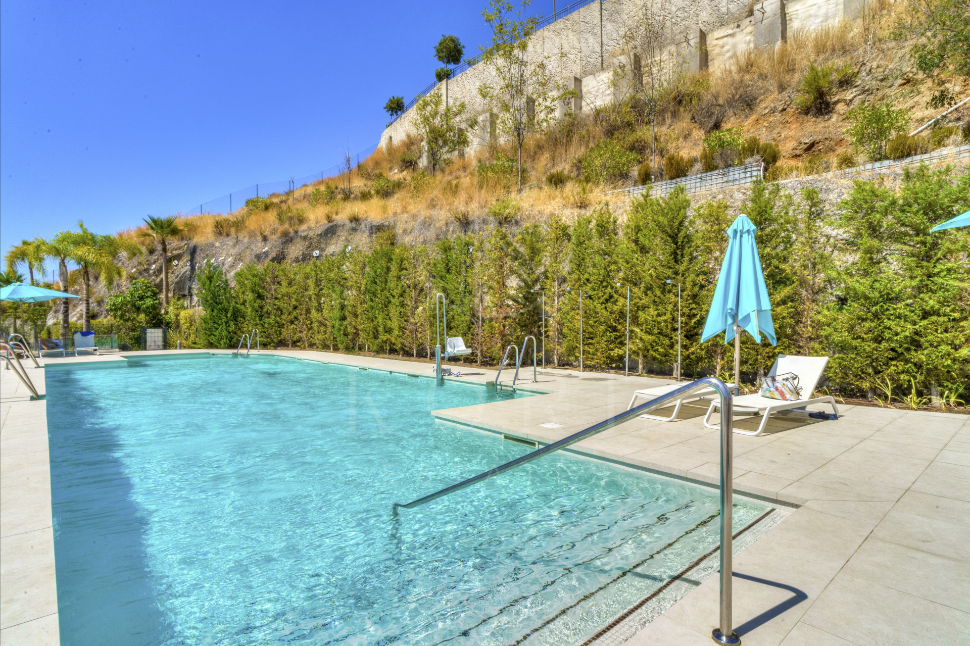 Este hermoso apartamento ofrece dos dormitorios y dos baños. Situado con orientación sur/este, el apartamento está inundado de luz natural durante todo el año. La propiedad ofrece vistas panorámicas a la montaña y al mar y cuenta con un diseño amplio y abierto que crea un ambiente luminoso y aireado. El dormitorio principal cuenta con un lujoso baño en suite y acceso directo a la terraza. Además de un dormitorio adicional y baño de invitados. Esta propiedad incluye un garaje con espacio para un coche y calefacción por suelo radiante. Situado en una comunidad cerrada segura, los residentes pueden disfrutar del acceso a zonas bellamente ajardinadas, piscinas comunitarias y espacios recreativos. La urbanización ofrece una completa tranquilidad mental con seguridad 24 horas, servicios de conserjería y un club de estilo resort que incluye una piscina cubierta, spa, sauna, gimnasio, centro de negocios, y una zona de juegos infantil dedicada. Otras características incluyen: ascensor, suelos de porcelana, armarios empotrados en ambos dormitorios, y un trastero. Situado en las tranquilas colinas andaluzas, Palo Alto Marbella ofrece una mezcla perfecta de entorno natural y sofisticación moderna.