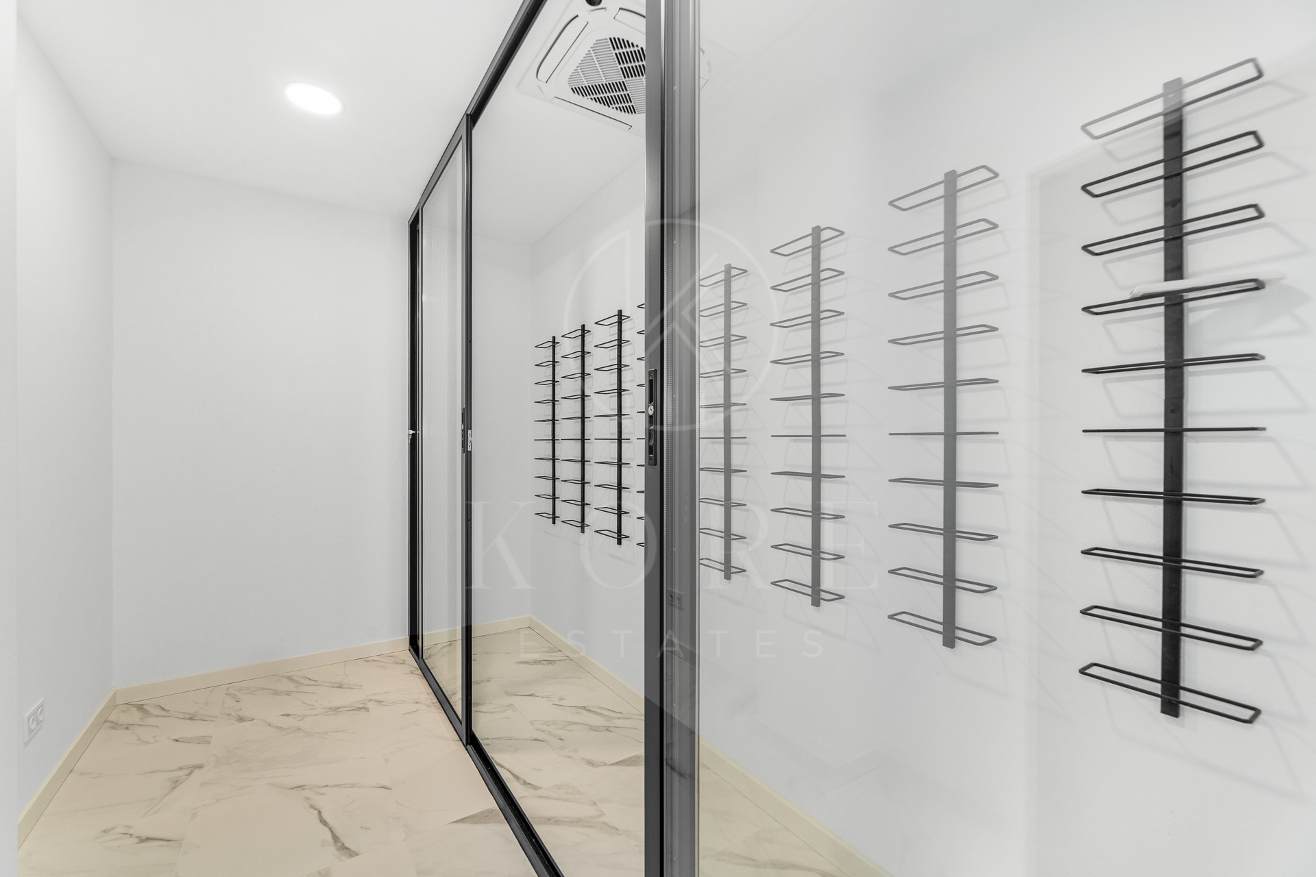 La planta inferior se presenta como un verdadero santuario de ocio y bienestar, con bodega, spa privado, sauna finlandesa y turca. Incluye un apartamento para el personal y cuenta con un espacio diseñado para instalar un gimnasio según sus necesidades.