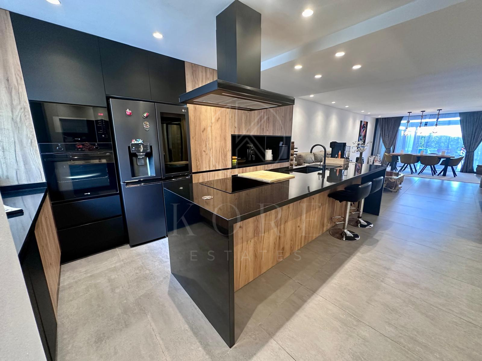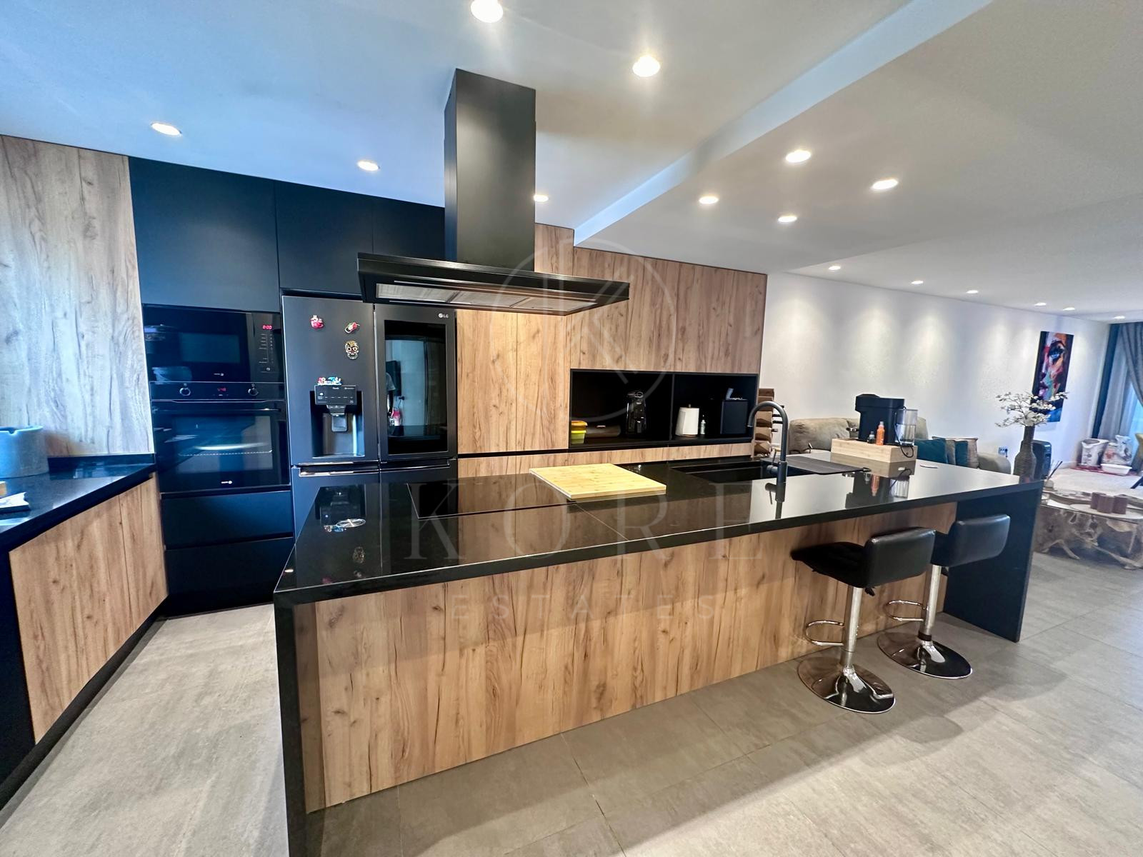 La cocina consta de todos los electrodomésticos de primeras marcas, y ha sido construida con isla central y gran capacidad de almacenaje.