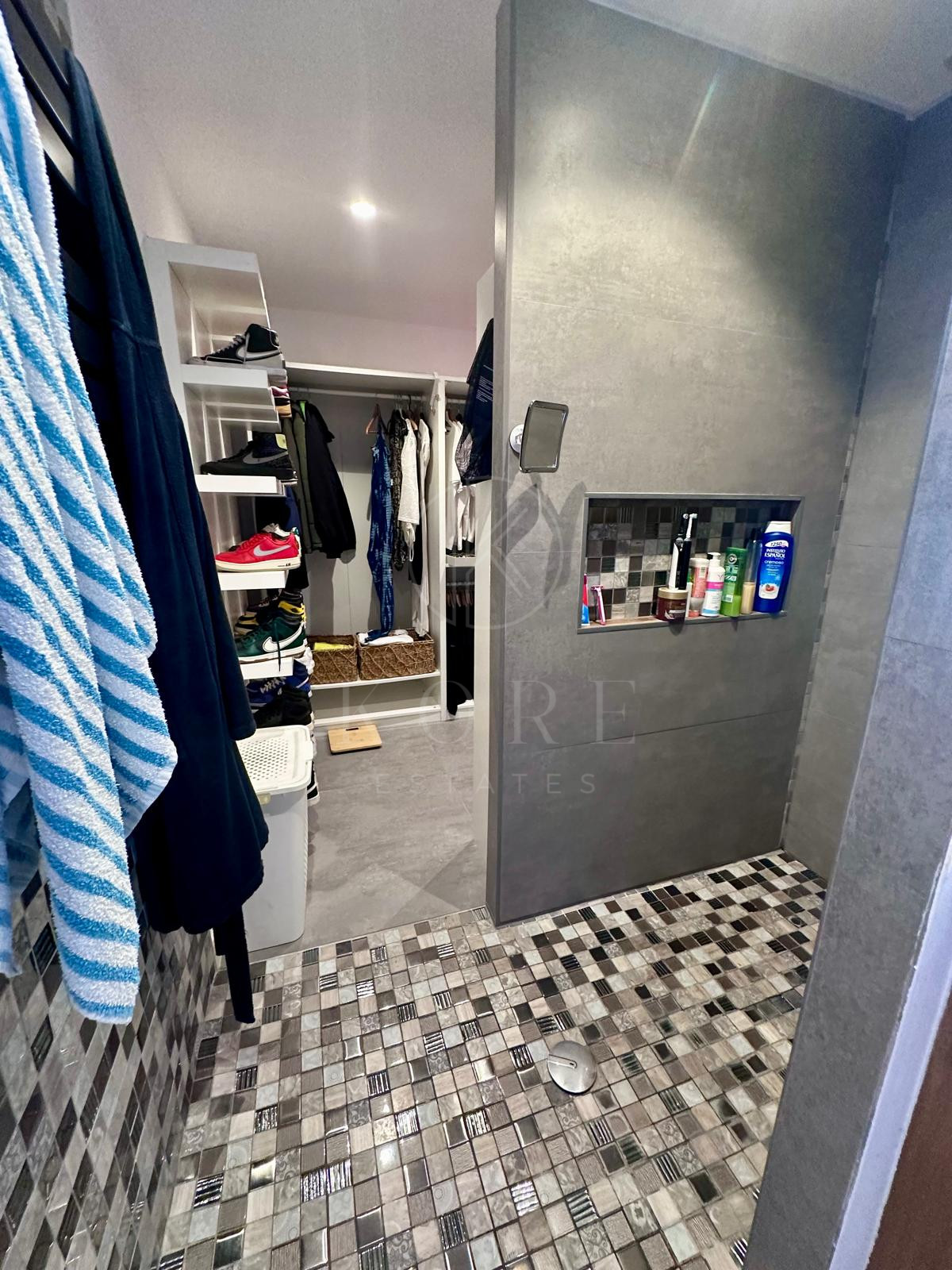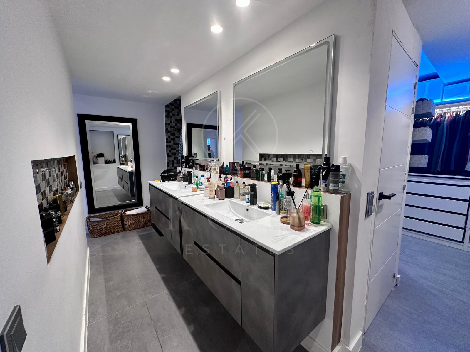 El dormitorio principal, super moderno, ha sido dividido en 2 partes; zona baño, con ducha, y zona del lavabos independiente (el & ella).