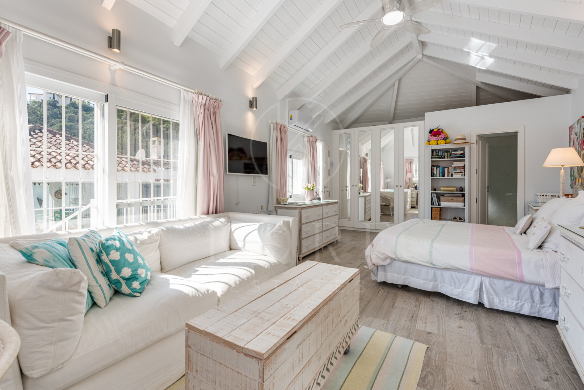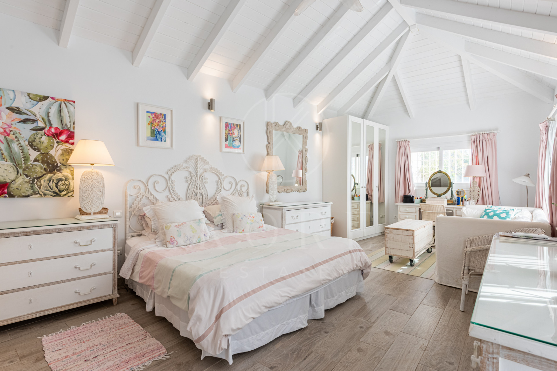 La villa está construida principalmente en una sola planta, con algunos escalones suaves que conducen a ciertas estancias, lo que añade encanto y personalidad al hogar. Los cuatro dormitorios están distribuidos en diferentes alas de la casa, ofreciendo privacidad y flexibilidad tanto para los miembros de la familia como para los invitados. Esta distribución también hace que la propiedad sea ideal como un pequeño B&B boutique o como casa vacacional multigeneracional.