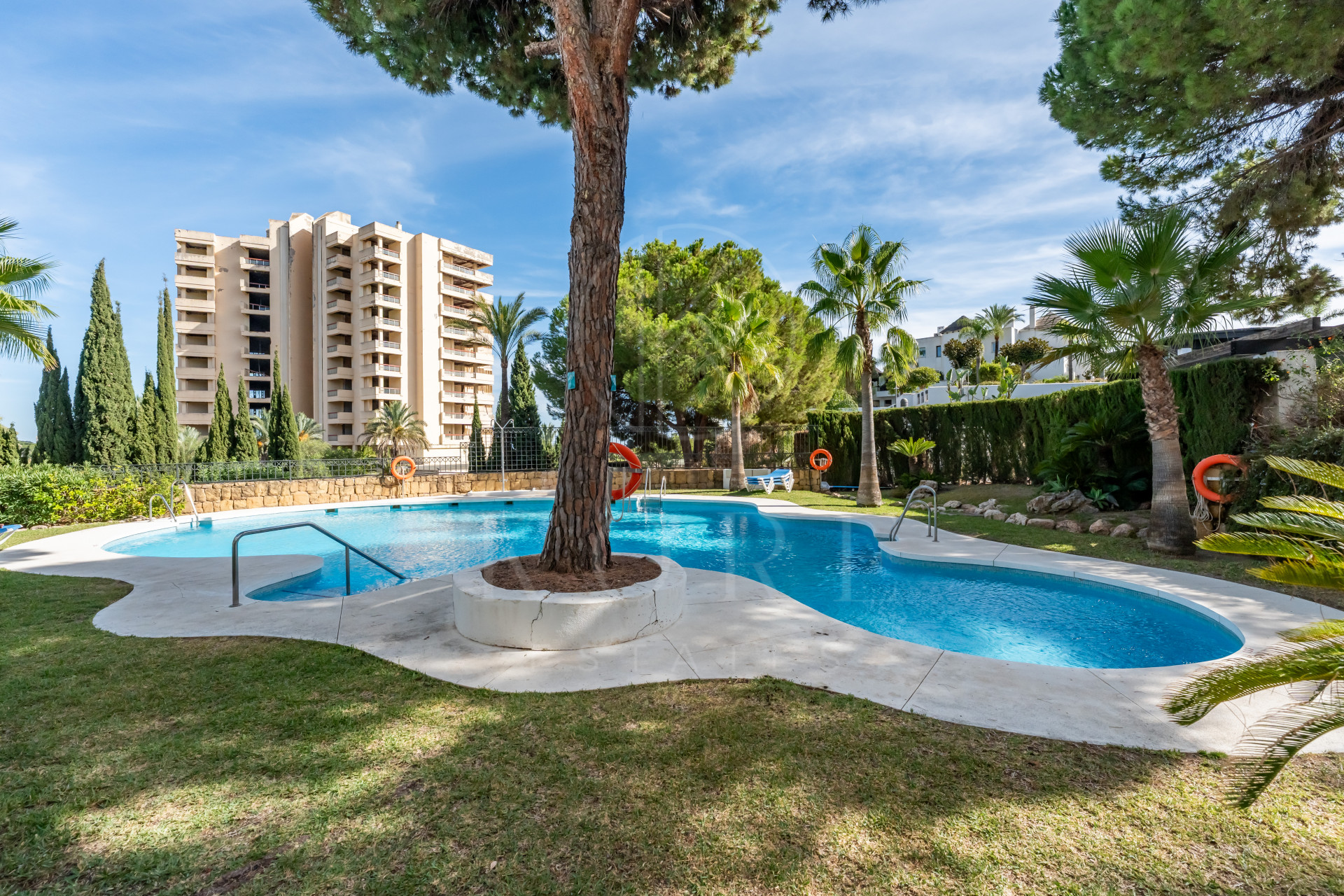 Originalmente era un amplio apartamento de un dormitorio, pero se reformó para convertirlo en uno de 2 dormitorios y un baño. Al entrar en el apartamento, le da la bienvenida un amplio vestíbulo abierto que conduce directamente al salón diáfano, decorado con muebles y accesorios de alta gama. A la derecha de la entrada hay una bonita cocina blanca que da al comedor y al salón. Si se sigue por el salón, se llega a la amplia y preciosa terraza que da a la piscina y al sur.