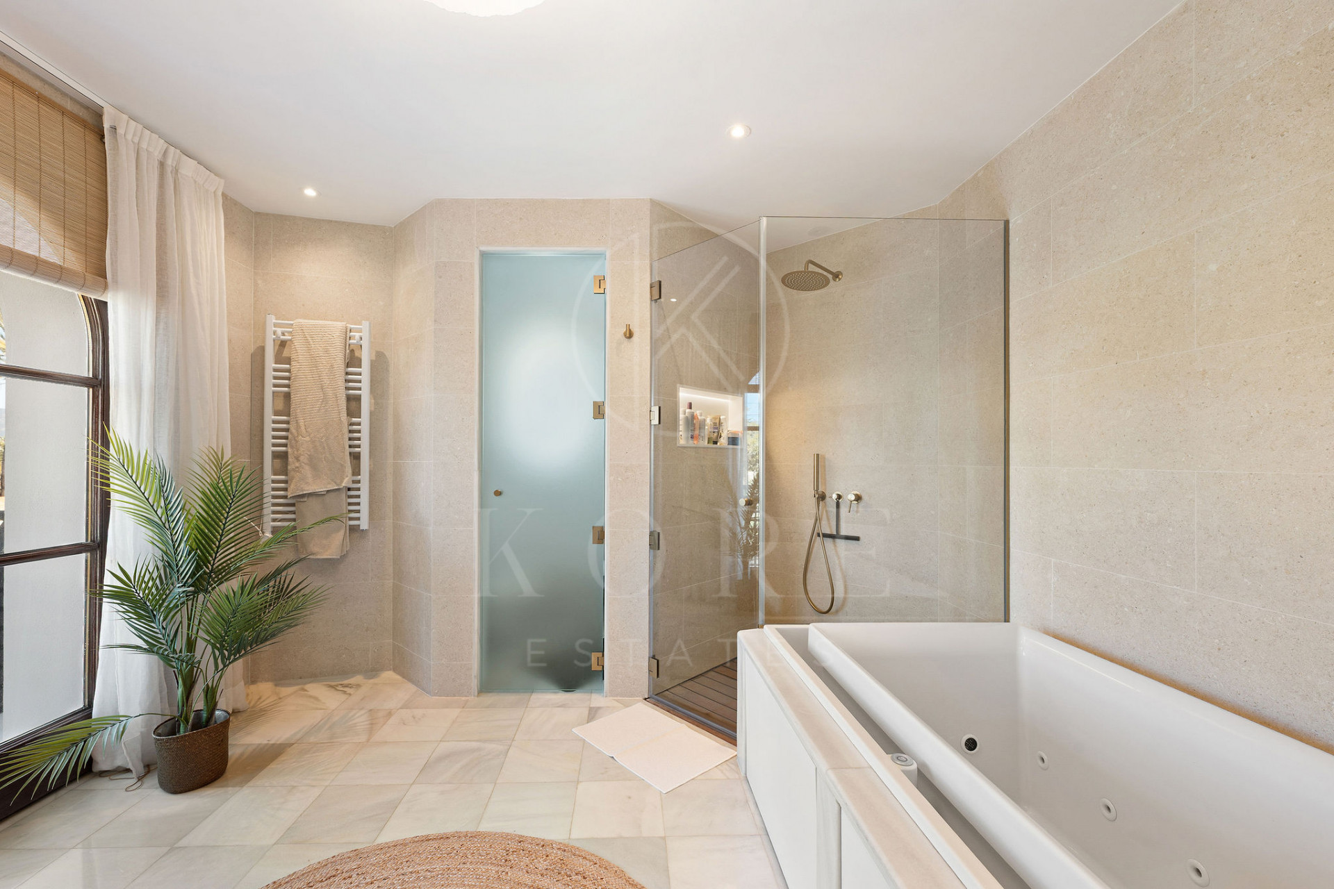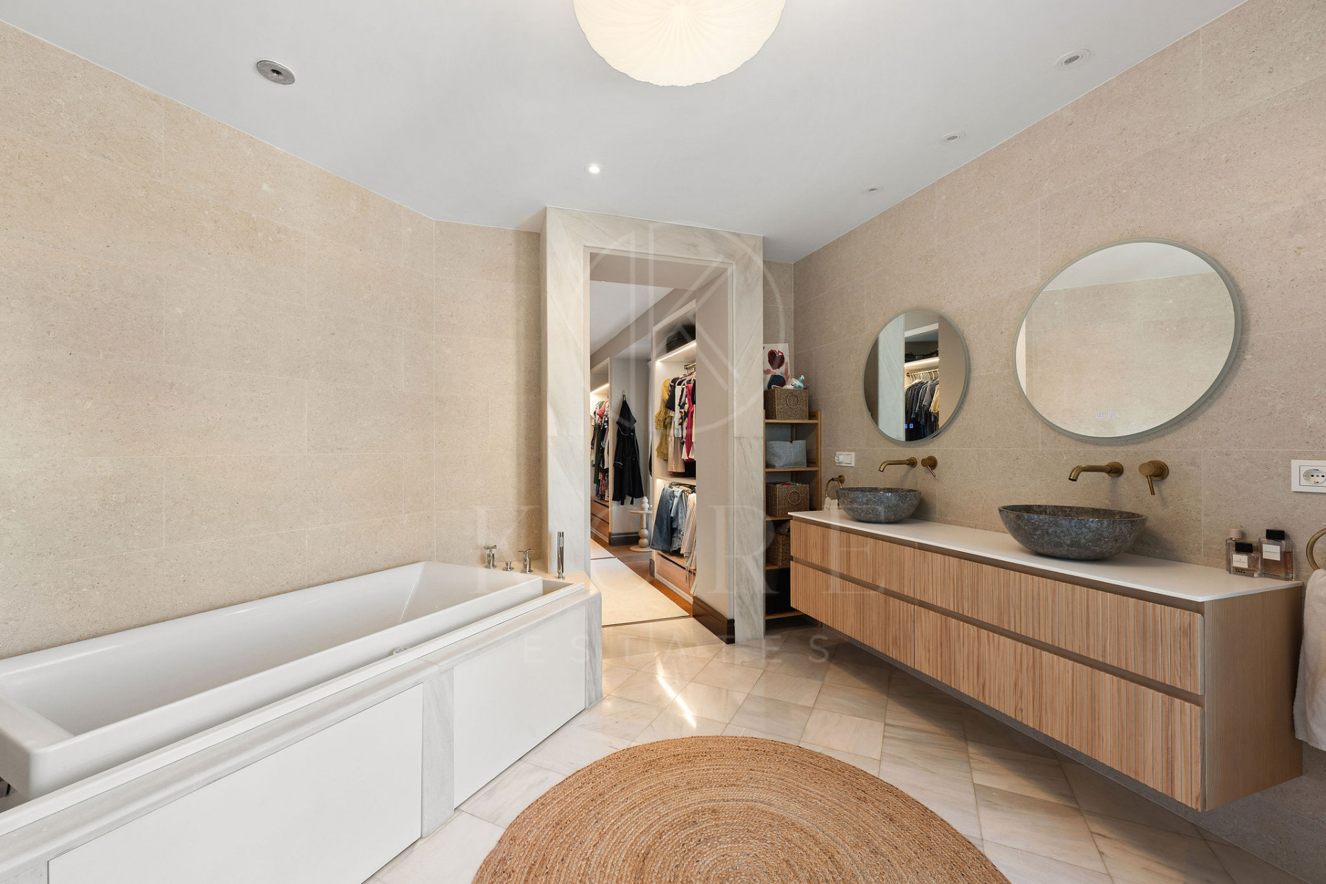 La propiedad cuenta con 6 dormitorios y 6 baños, incluyendo una amplia suite principal con vestidor y baño en suite.