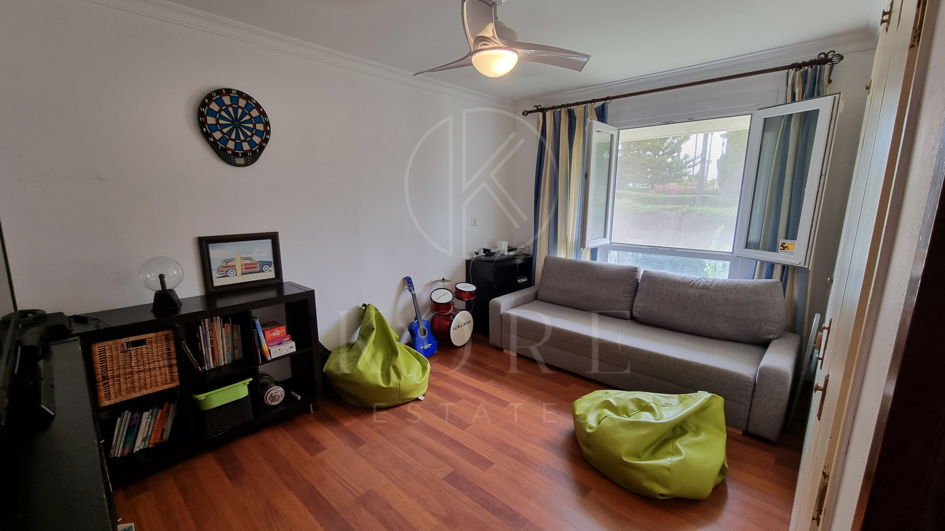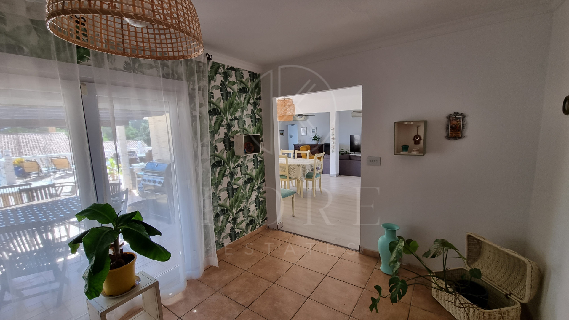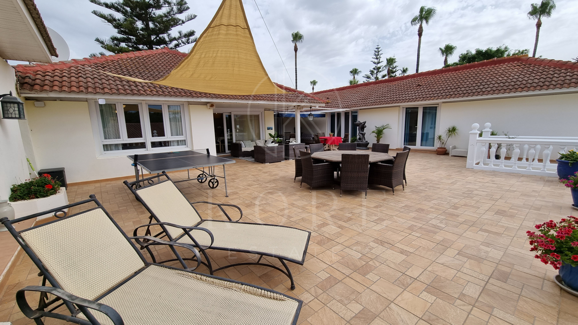 Diseñada para el confort y un estilo de vida relajado, la villa cuenta con dos amplios salones, una cocina completamente equipada con comedor anexo y aire acondicionado en todas las estancias. La vivienda dispone de siete dormitorios espaciosos, seis baños y una sala de juegos/habitación de invitados con sofá cama, lo que la hace perfecta para familias numerosas o quienes disfrutan de recibir invitados.