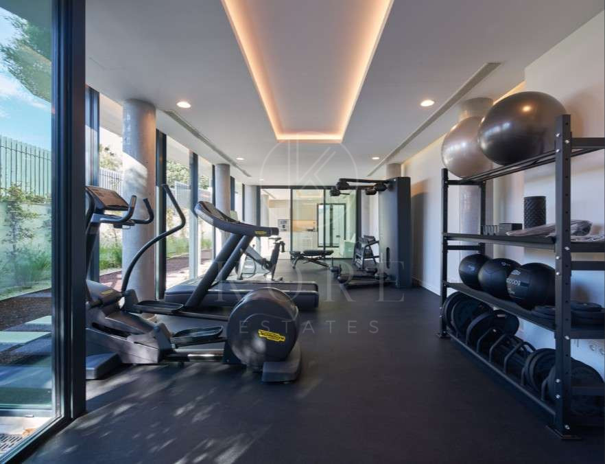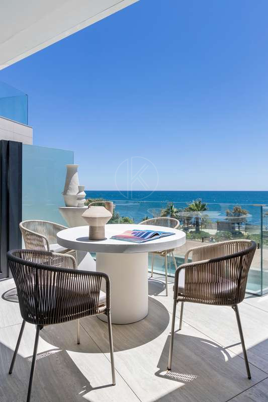 – 24-hour security.- Health and Wellness Zone: with fitness area, sauna and a 16.5 metre indoor swimming pool.- A dazzling beachside infinity pool and terrace, offering breathtaking views of the Mediterranean Sea.- Beautifully landscaped gardens creating serene spaces for leisure and recreation.- Direct access to the beach.- Flats equipped with features such as home automation and security, lighting control, air conditioning control, aerothermal system.- Fully fitted Bulthaup kitchens with Gaggenau appliances, Laufen fittings.- Thermally and acoustically insulated, underfloor heating, internally illuminated wardrobes, security entrance doors.- Sold furnished.Located on Guadalobón Beach, just west of Estepona’s vibrant center, residents have access to boutique shops, restaurants, the Andalusian cultural charm of the town’s historic old town, and a picturesque promenade that runs along the beach. It is a convenient option for those seeking both relaxation and interaction with the local community.
