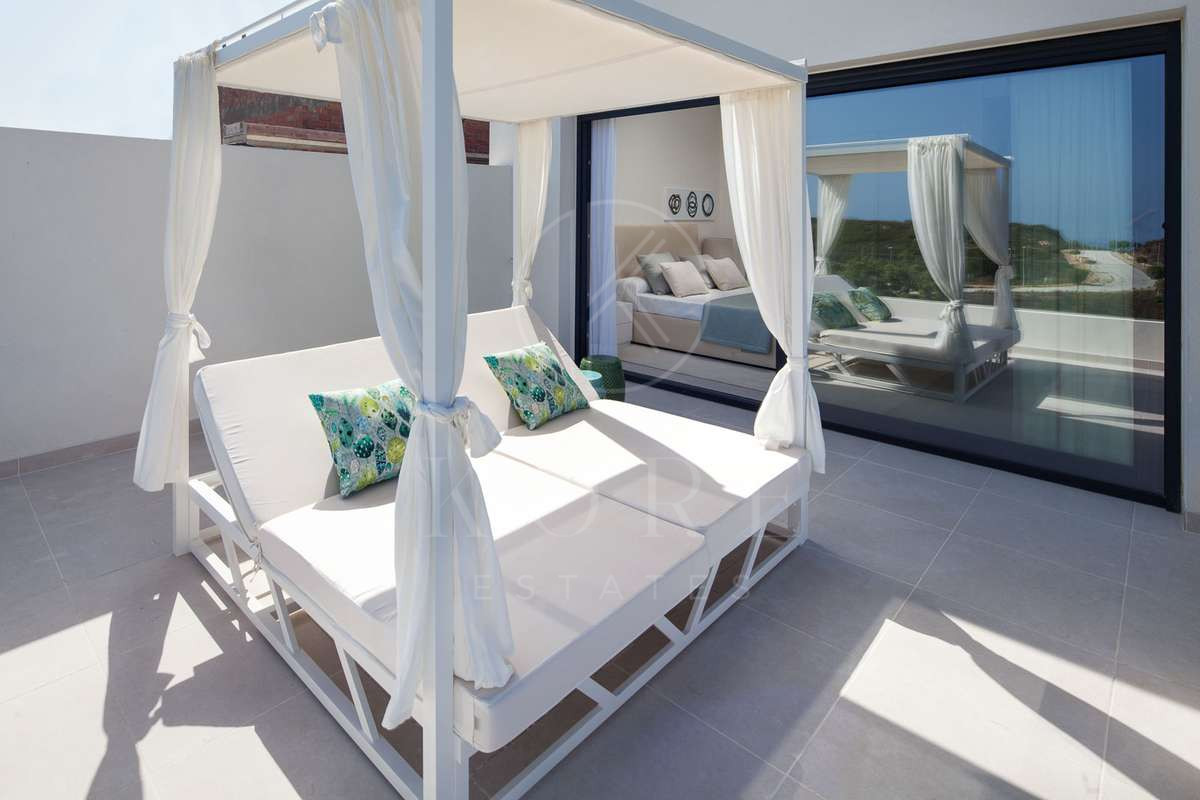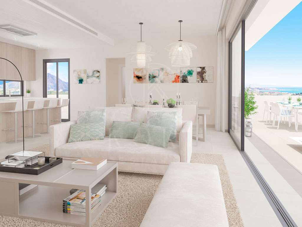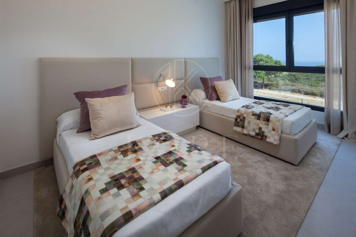 This exciting project offers 44 two- and three-bedroom homes, distributed among apartments, penthouses, and townhouses, located on a hill with spectacular views of the sea and mountains, adjacent to the Finca Cortesín golf course.