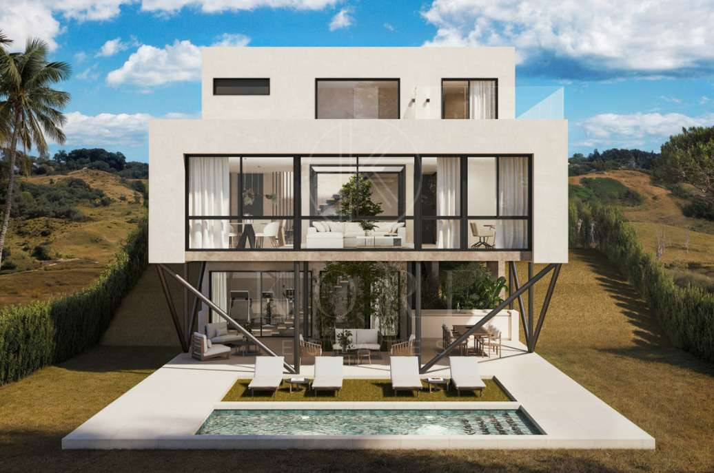 Modern high-tech luxury villa featuring 4 spacious bedrooms, each with its own en-suite bathroom. The property is equipped with an advanced home automation system, a state-of-the-art solar ecosystem, a private swimming pool, and spectacular sea views.