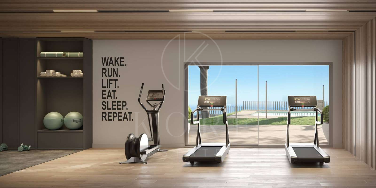 It offers common areas that redefine luxury, designed to elevate your living experience. It offers a large outdoor pool with open sea views, an exclusive spa area and a fully equipped gym. It also has a cafeteria and coworking area within the complex, a perfect place to socialize and enjoy unforgettable moments.