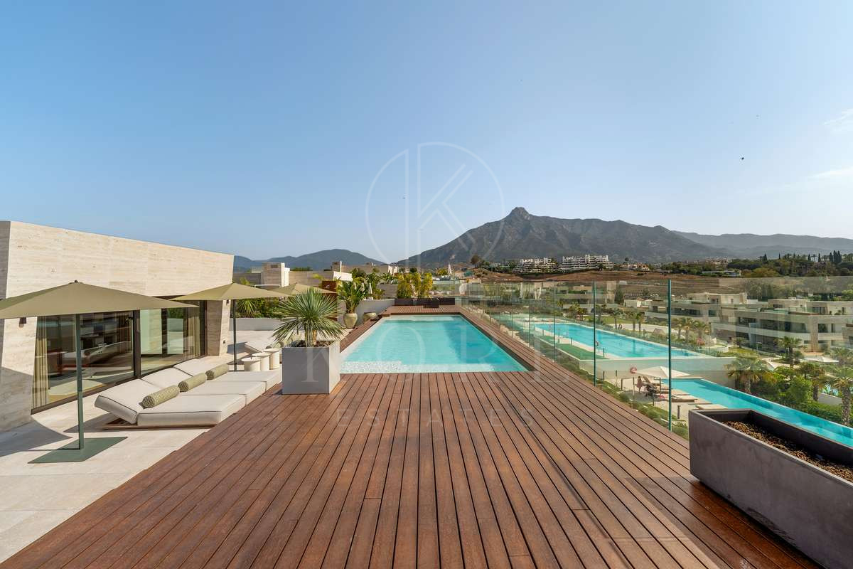 Upstairs, a private pool offers a personal oasis, complemented by the option of installing a bar or barbecue for maximum leisure and entertainment.