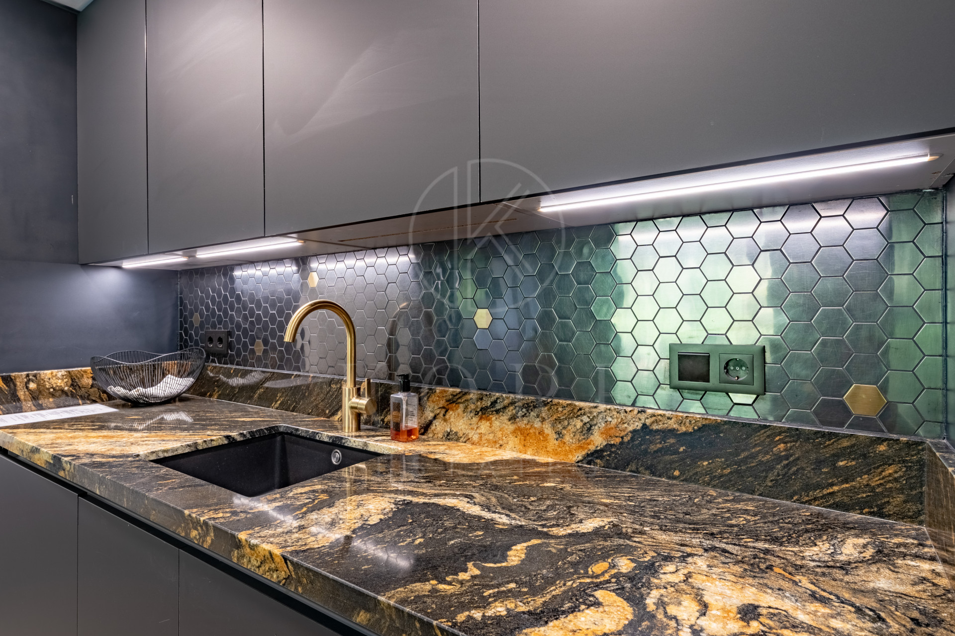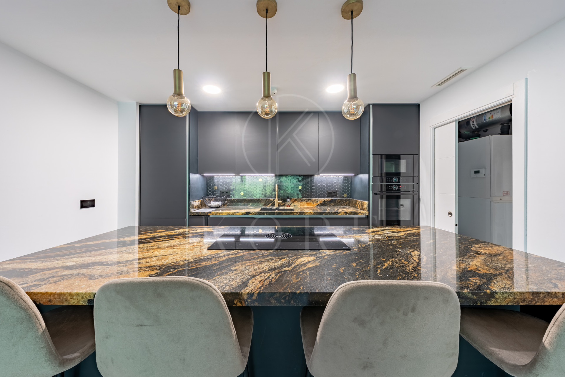 With over 100 m² of interior space, it features 3 spacious bedrooms, 2 fully upgraded bathrooms with premium finishes, and a very private 45 m² sun-drenched terrace boasting panoramic views of surrounding mountains. Every detail has been carefully selected, including a designer kitchen equipped with Bosch appliances, a BORA hob with integrated extractor, and a high-end countertop. The living room is elegantly finished with Cavalli wallpaper, enhancing the luxurious feel of the space.
