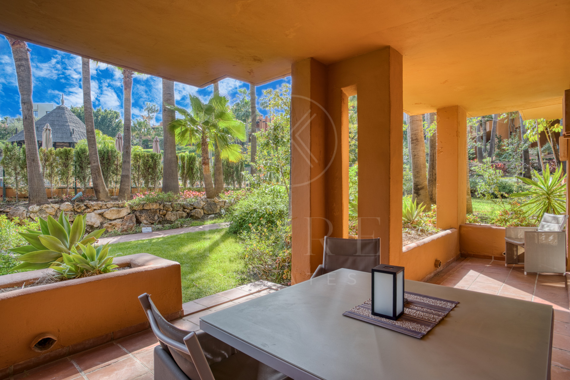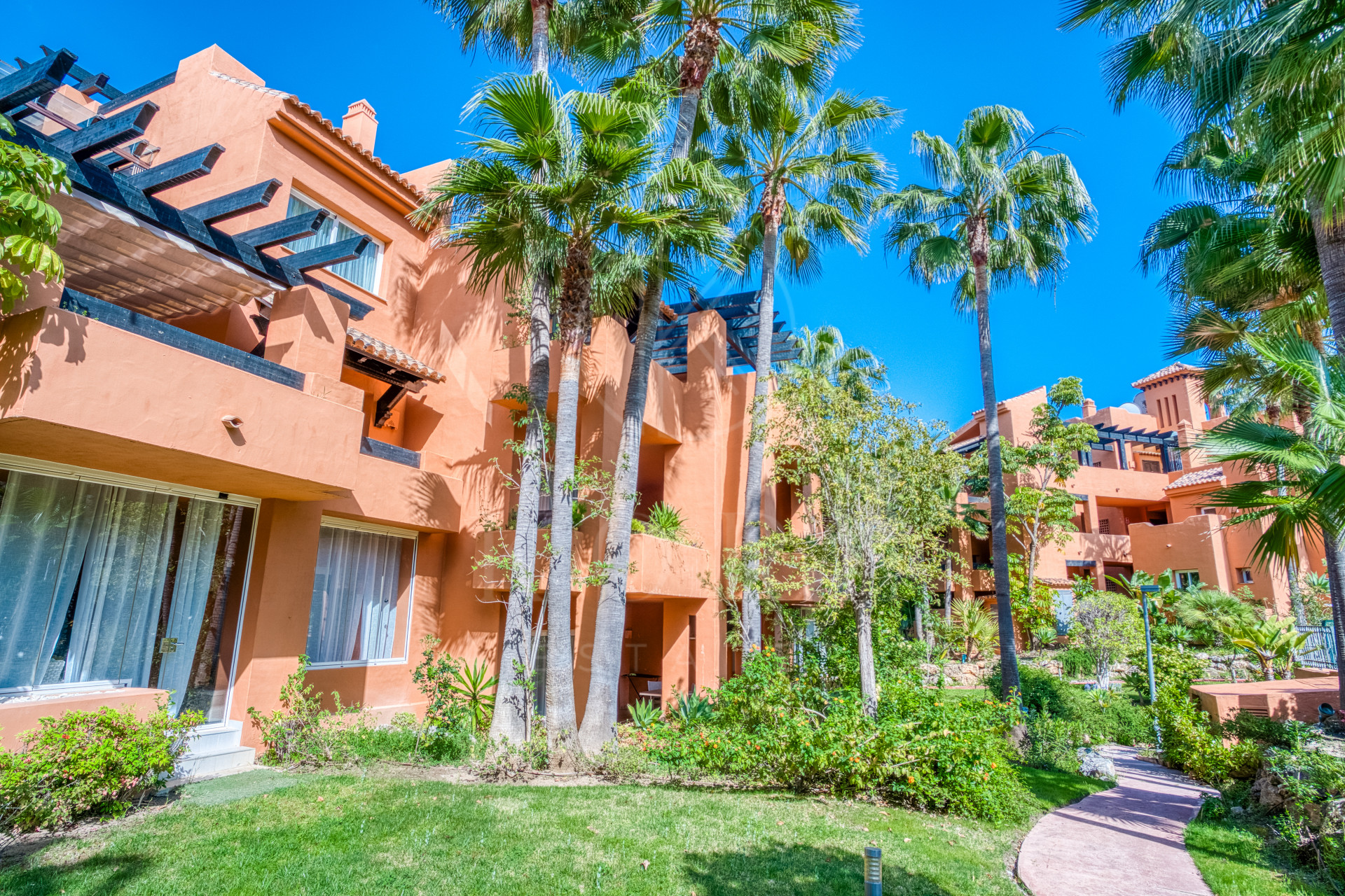 Charming east-facing two-bedroom ground floor apartment with direct pool access in Alminar del Sur, Nueva Andalucía