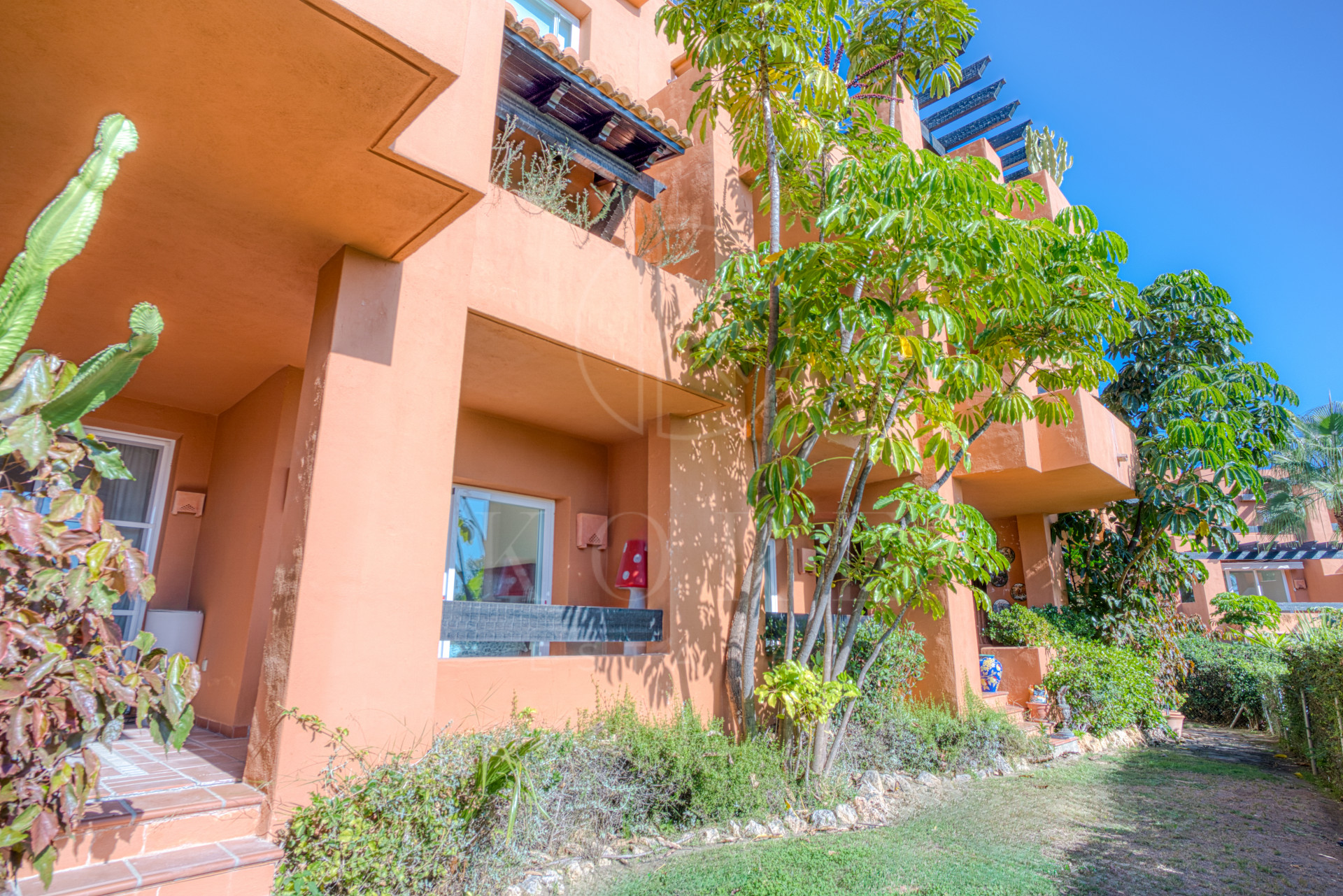Elegant ground-floor apartment located in one of the most exclusive and peaceful developments in Nueva Andalucía. This carefully maintained property offers the perfect blend of comfort, privacy, and Mediterranean charm. It features two spacious bedrooms and two bathrooms, including a master bedroom with en-suite bathroom. Both bedrooms enjoy access to their own private terraces, providing plenty of natural light and added privacy. The independent kitchen is fully equipped and includes a convenient laundry area. The bright living-dining room opens onto a large private terrace with direct access to the communal pool, ideal for enjoying outdoor living all year round. Additional features include a private underground parking space and a storage room. Set within a gated community with 24-hour security, the complex is surrounded by lush tropical gardens, a lake, and a large swimming pool, offering a secure and peaceful environment. Ideally located just minutes from Puerto Banús, top golf courses, and all essential amenities, this property is an excellent choice as a permanent residence, holiday home, or investment opportunity.
