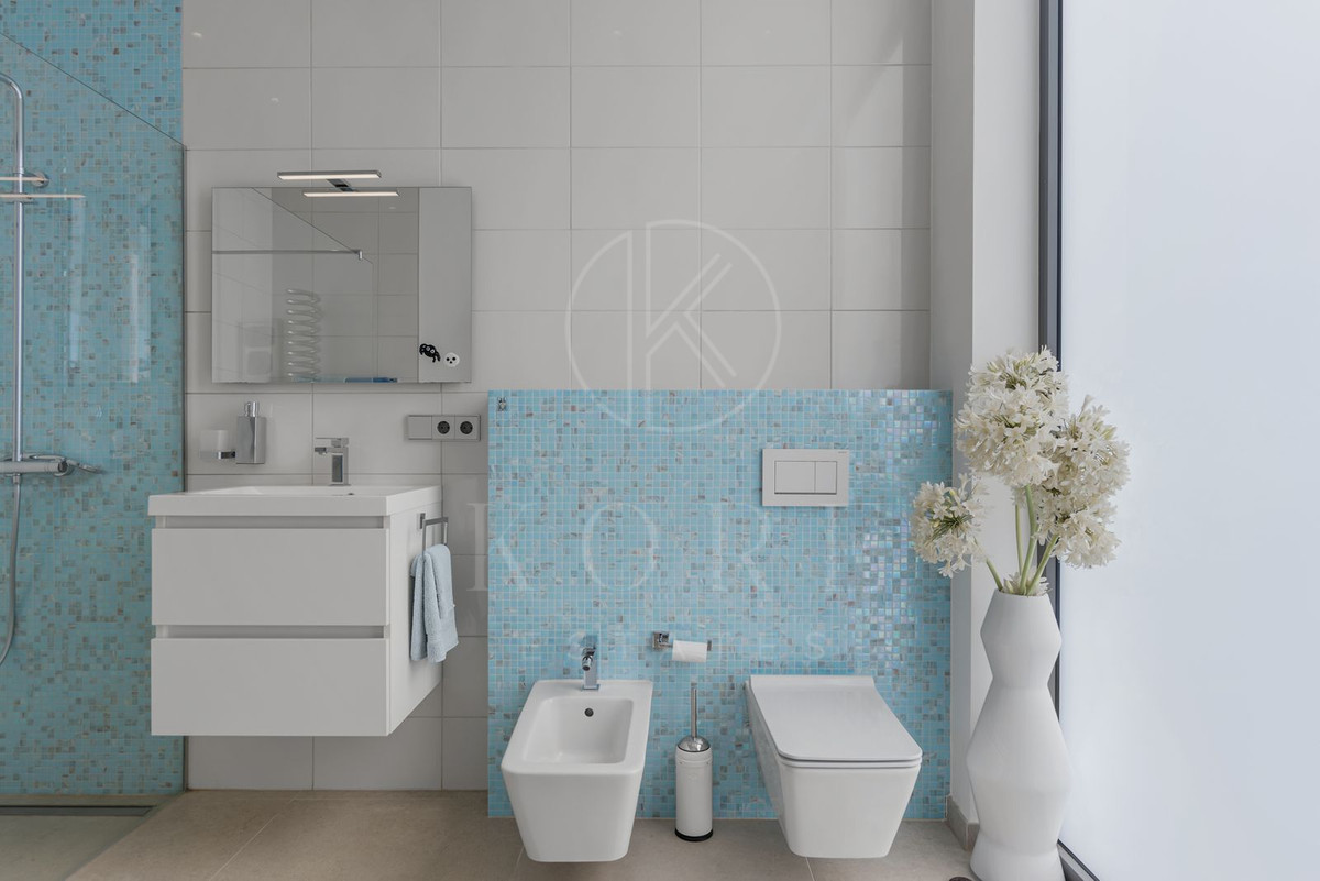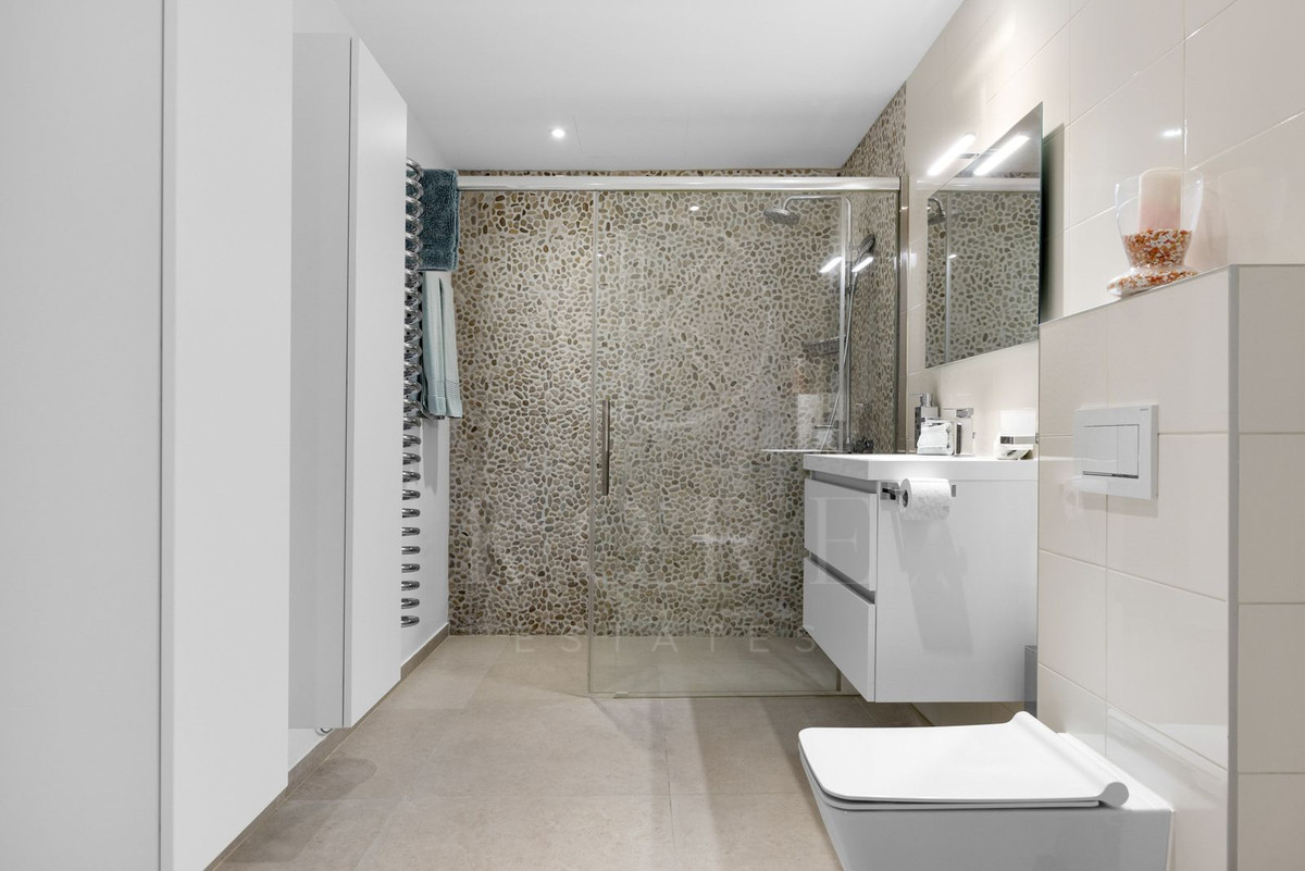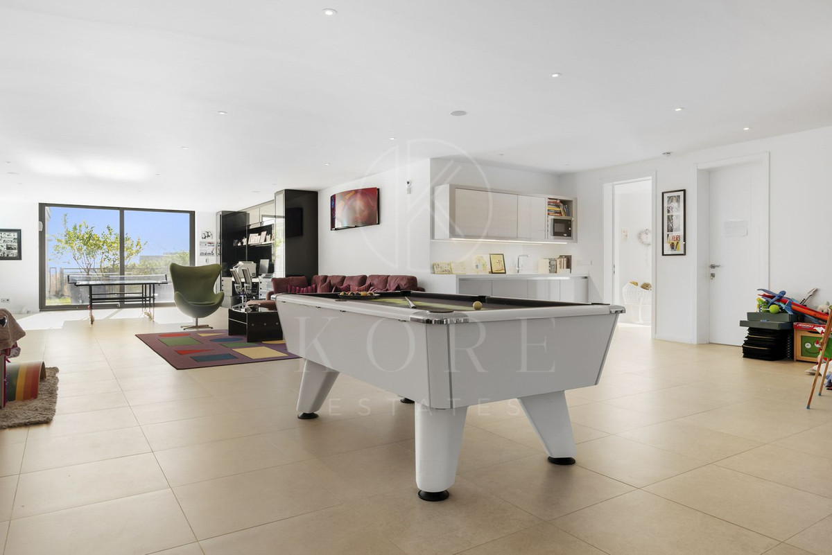 Upon entering the property, you'll be captivated by the villa's contemporary charm, featuring an open-plan layout that integrates each living space. Featuring high ceilings and expansive floor-to-ceiling windows, natural light floods the interiors, creating a bright and inviting atmosphere. The avant-garde interior design exudes a sleek, modern ambience, delivering an understated sophistication that leaves a lasting impression.