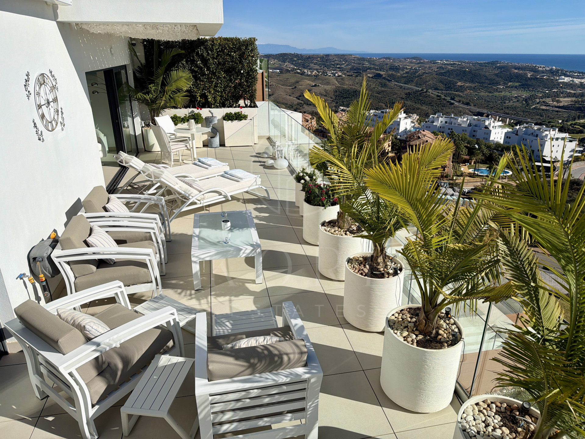 Amazing duplex penthouse with 360 views, situated in a commanding position at the top of the La Cala valley enjoying sweeping landscapes which stretch for miles, yet it is just an 8 minute drive to the centre of the La Cala village. One Heights is a select, highly secure urbanisation of just 68 apartments, with only one other similar atic penthouse.