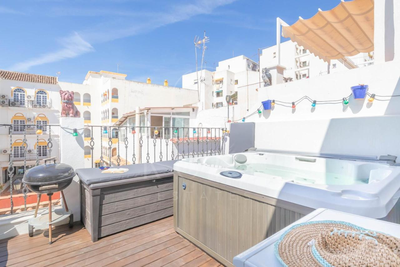 Brand new house with a parking space. Cinderella Marbella is an entire, independent house in a prime location in the center of Marbella and features a terrace and Jacuzzi. It is in a quiet area yet 2 minutes from restaurants, supermarkets, shops, etc. The house has been completely renovated. It is located 700 meters from Venus Beach and offers free Wi-Fi throughout. The house has air conditioning and fans, a flat-screen TV in the living room, bathroom, and terrace, a fully equipped kitchen with a refrigerator, a seating area, a washing machine, 2 bathrooms with a shower and a whirlpool tub, a TV with all international channels, and a guest toilet. It has an elevator. The terrace is also equipped with a table and chairs for enjoying a meal with a barbecue, a refrigerator, a sink, an automatic awning, and a Jacuzzi. The house is also accessible for people with reduced mobility. A luxury house in the center of Marbella with all kinds of luxuries and details. Just bring your clothes and enjoy the house and Marbella. This house has an air quality certificate and is mold-free. The house is less than 1 km from El Faro Beach and a 10-minute walk from Fontanilla Beach.
