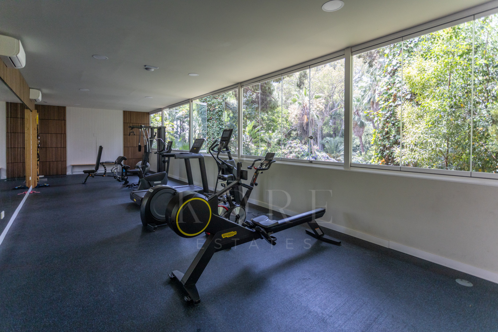 Located within a gated community with 24-hour security, concierge service, and surveillance cameras, the complex also features beautifully maintained gardens, two swimming pools, and a fully equipped gym.