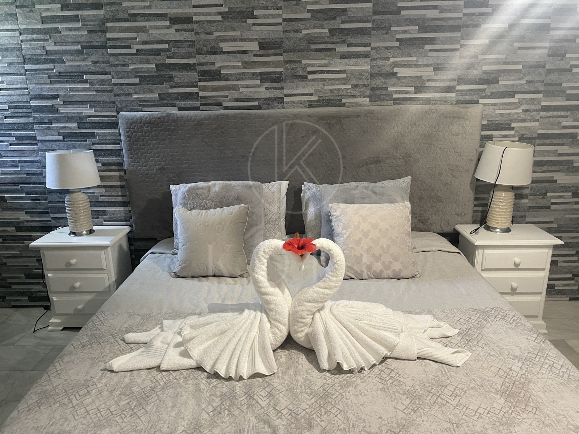 The villa offers excellent rental potential with all necessary licenses in place. It features a large pool, expansive outdoor space with a well-established garden, and low-maintenance artificial grass. The main living area on the entrance level opens onto a covered terrace, already fitted with glass curtains, allowing for year-round enjoyment and views over the pool.
