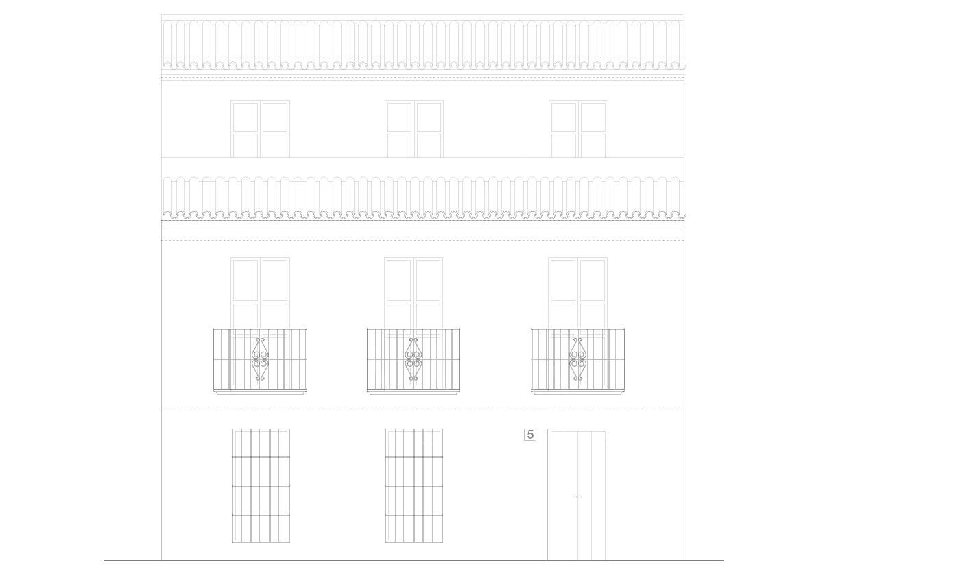 The middle floor is dedicated to comfort, with three spacious double bedrooms, each boasting a private en-suite bathroom and ample room for built-in wardrobes. Two of the bedrooms face the street, adorned with traditional Juliette balconies, while the third overlooks the patio, offering a quieter ambiance. A centrally located TV/library room connects these rooms and provides access to a shared terrace with views of the patio and summer kitchen area.
