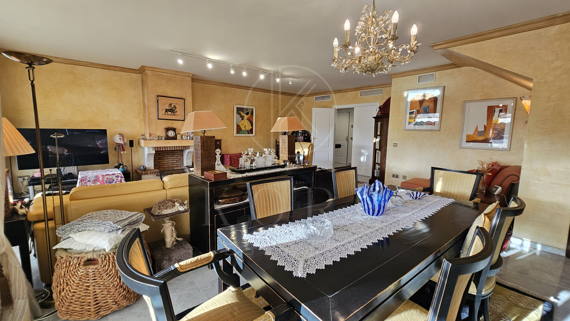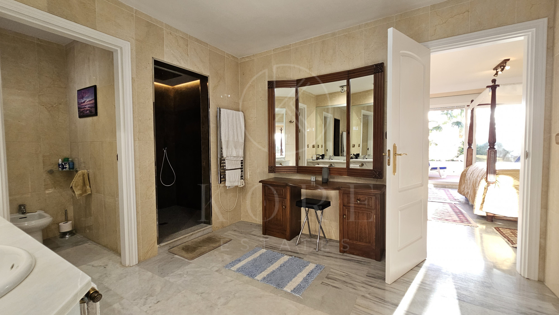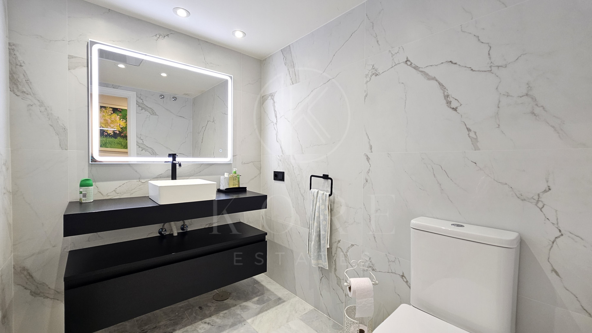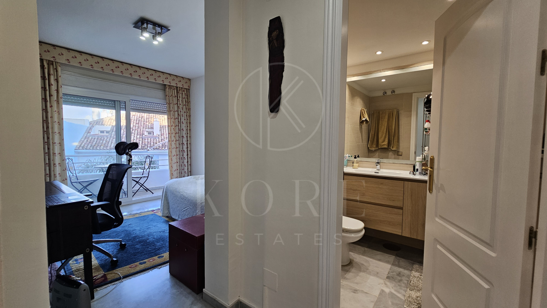 The penthouse features three expansive bedrooms, each designed with comfort in mind, and four modern bathrooms, including a multifunctional rain shower for a spa-like experience. The interior exudes elegance with marble flooring throughout, a cosy fireplace in the living room, and a dedicated study and office room. The walk-in closet and utility room add to the practicality of this home. Double glazing by Kommerling ensures energy efficiency, while the ‘Airzone’ remote-controlled air conditioning system provides tailored climate control for each room. The property has been recently renovated, presenting itself in impeccable condition, ready for immediate occupancy.