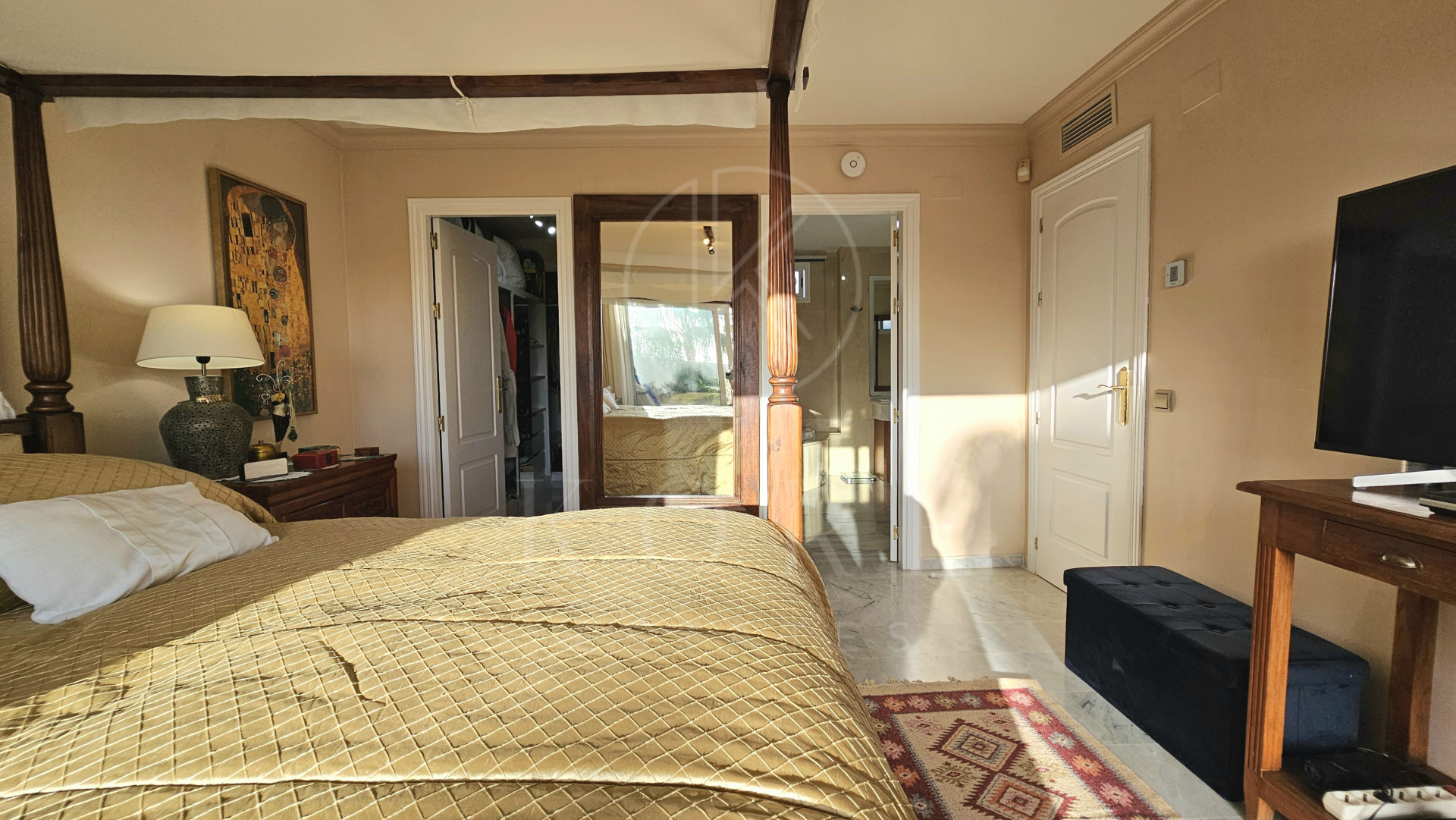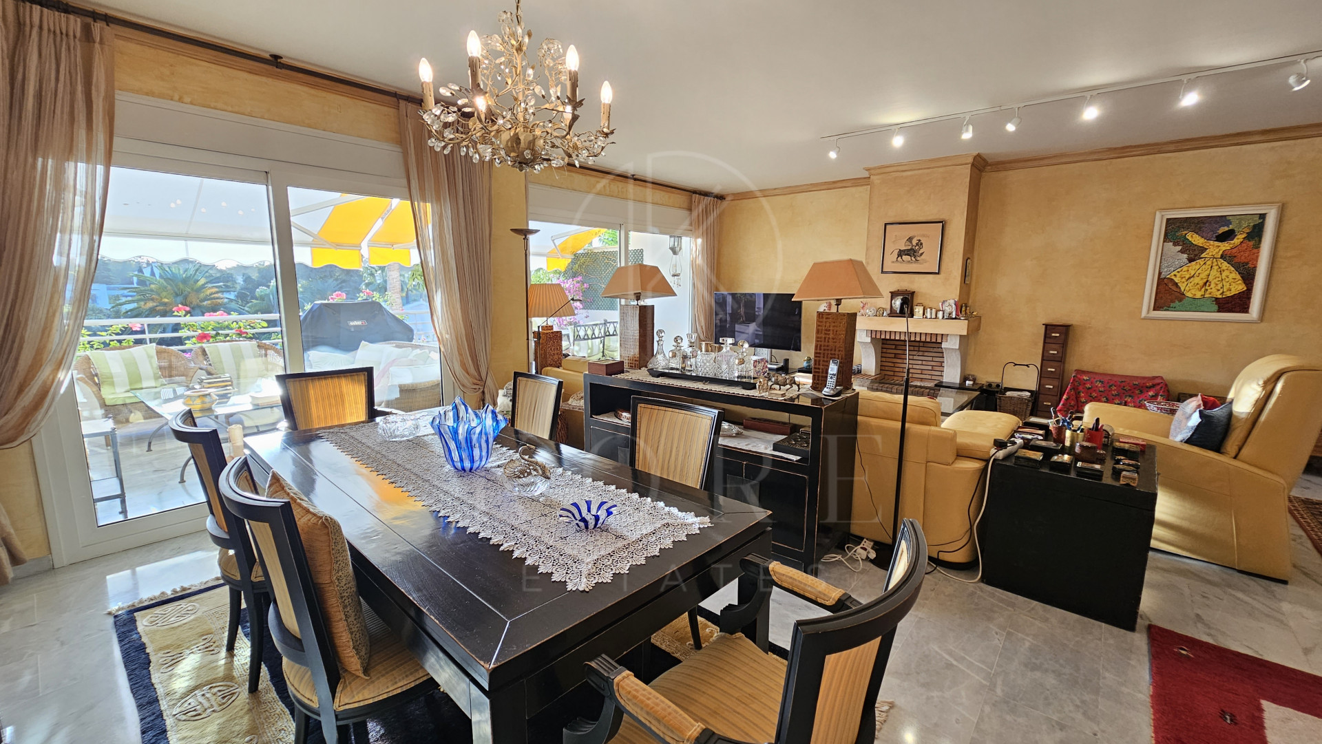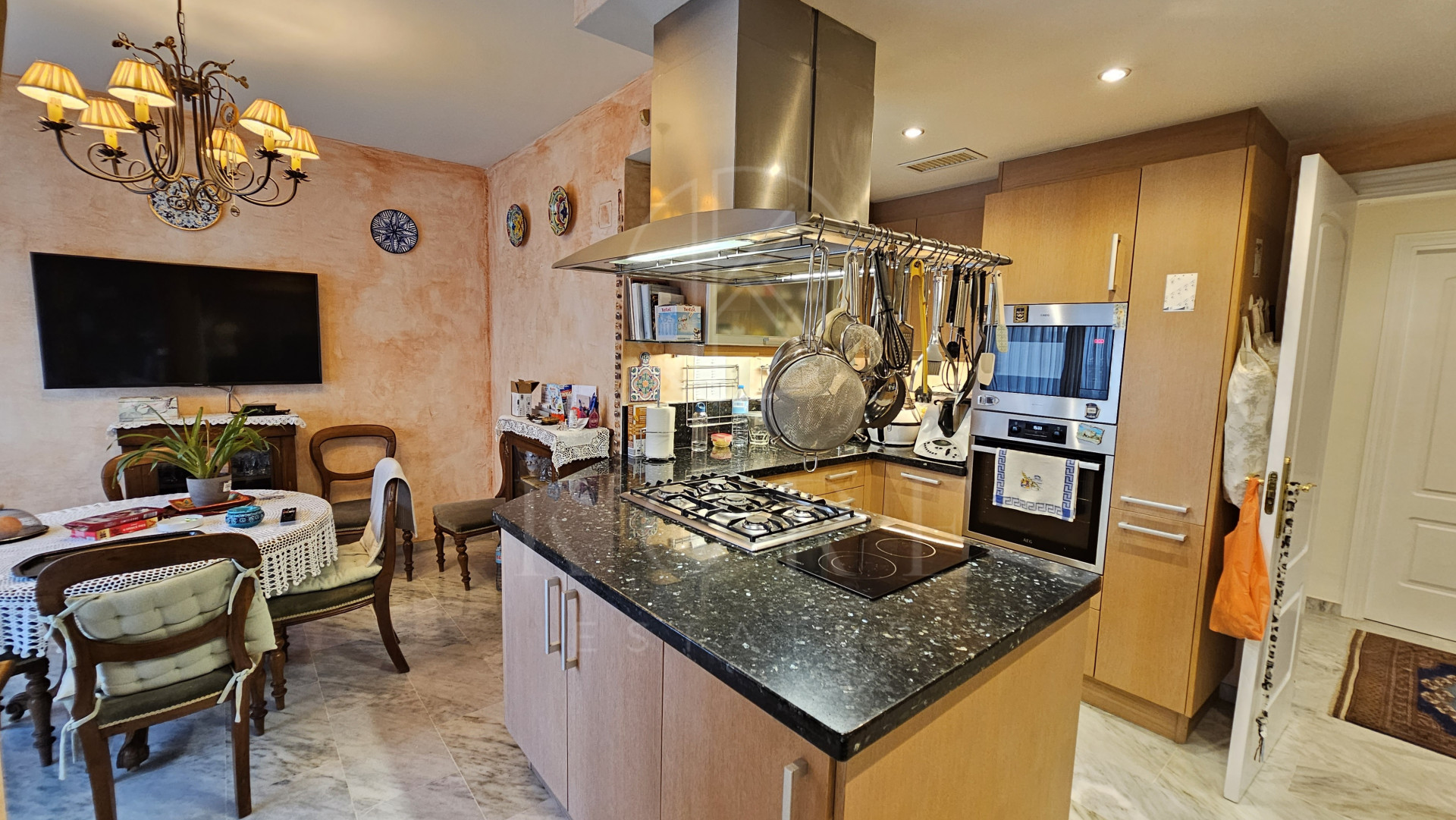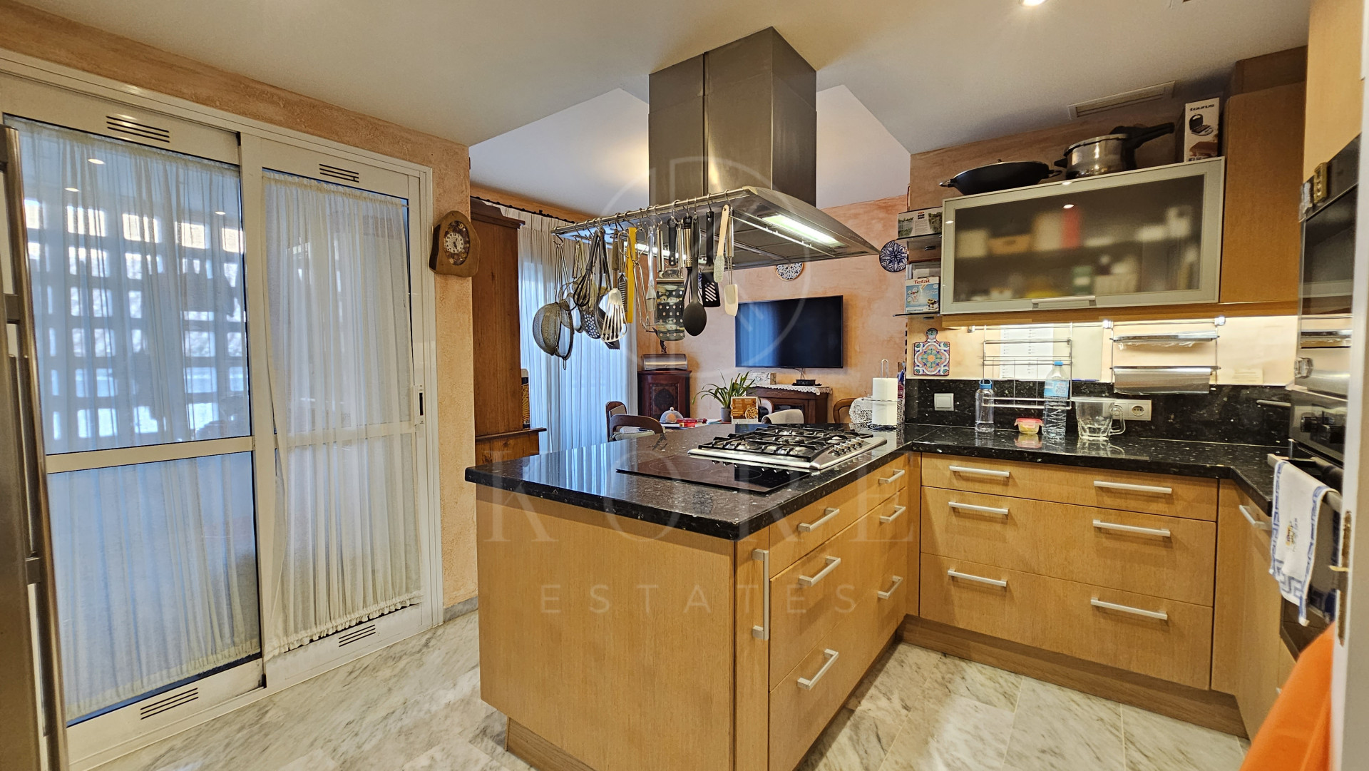 The penthouse features three expansive bedrooms, each designed with comfort in mind, and four modern bathrooms, including a multifunctional rain shower for a spa-like experience. The interior exudes elegance with marble flooring throughout, a cosy fireplace in the living room, and a dedicated study and office room. The walk-in closet and utility room add to the practicality of this home. Double glazing by Kommerling ensures energy efficiency, while the ‘Airzone’ remote-controlled air conditioning system provides tailored climate control for each room. The property has been recently renovated, presenting itself in impeccable condition, ready for immediate occupancy.