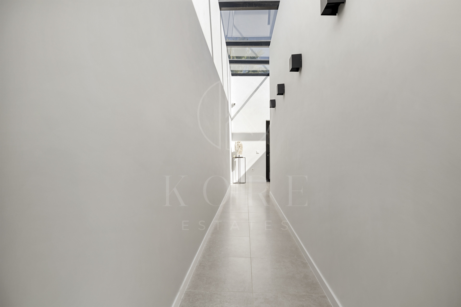Newly built contemporary villa situated in the prestigious urbanization of La Alquería, Benahavís. Positioned frontline golf and facing east to south, the property offers panoramic views of the Mediterranean Sea, the coastline, and the iconic La Concha mountain.