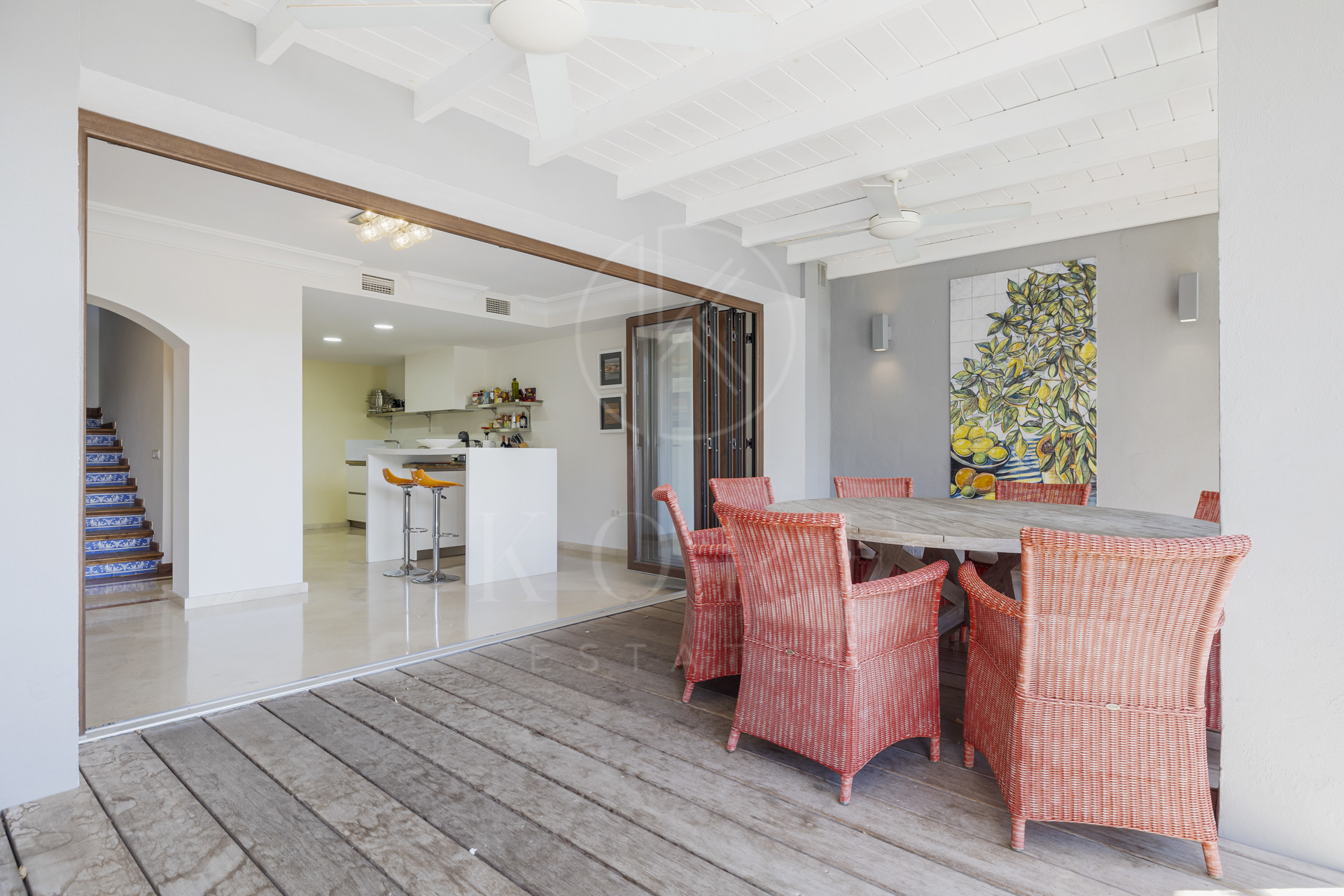 Located in the sought-after community of La Perla de la Heredia, on the Ronda road near Marbella, this exceptional five-bedroom townhouse offers a blend of comfort, style, and convenience. South to west orientated, the property enjoys sunlight throughout the day. Recently partly renovated, it provides a modern yet warm atmosphere in a prime location close to all amenities, golf courses, and the town center of San Pedro, with the beach just a 10 to 15-minute drive away.