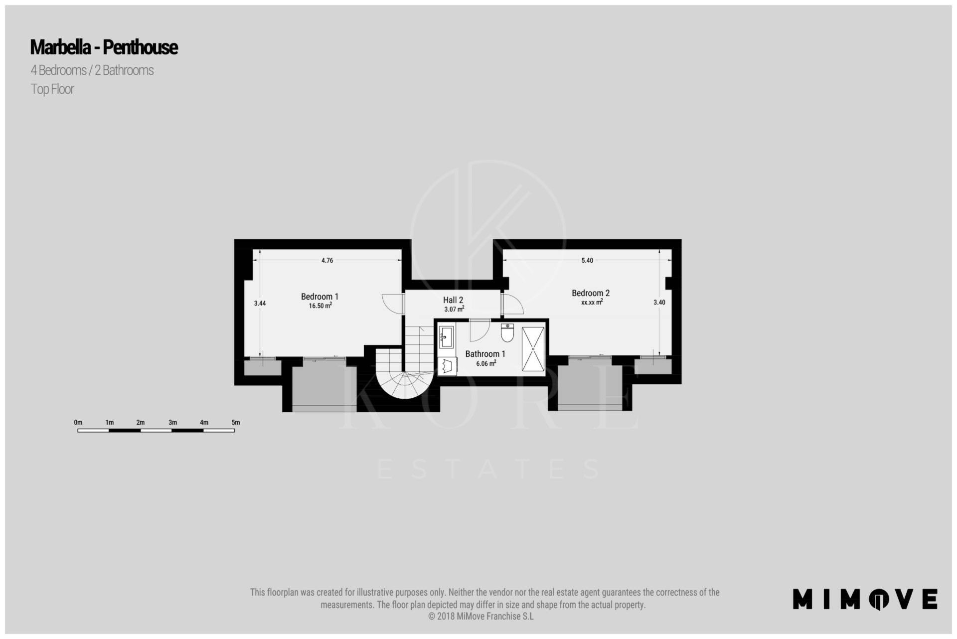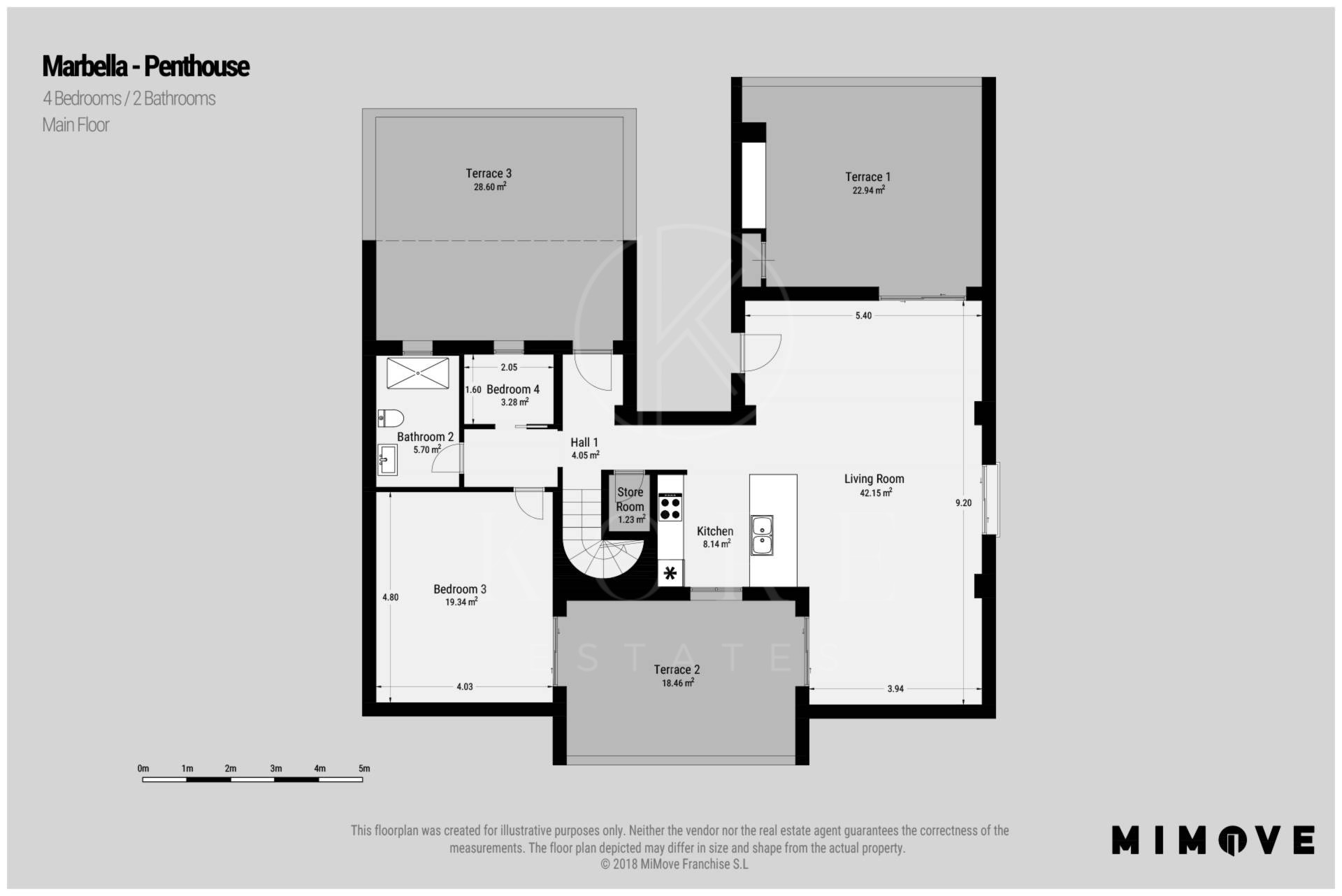 The penthouse has a total of 4 bedrooms and 2 bathrooms, open floorplan and big social areas.