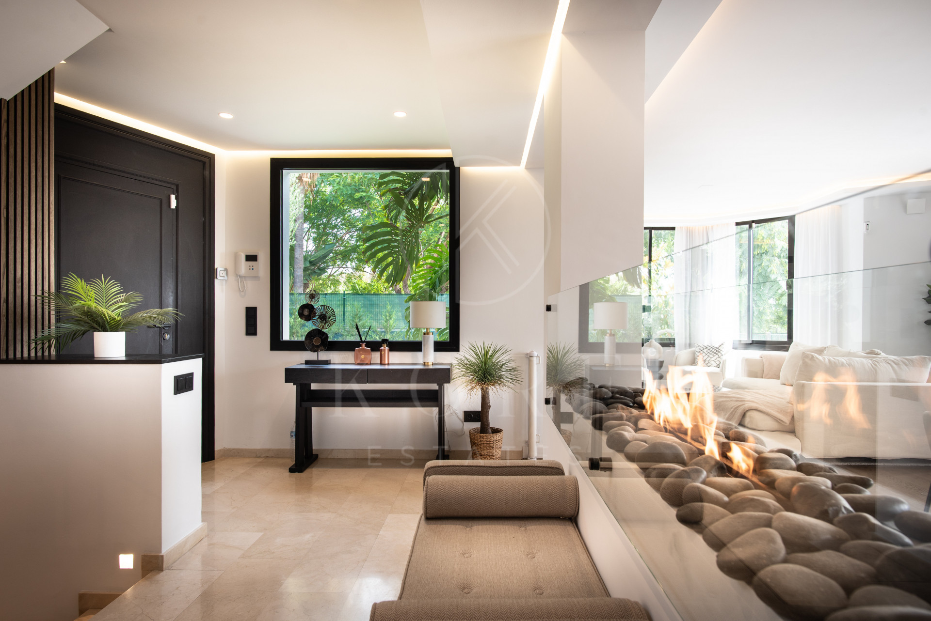 The thoughtfully designed home features five spacious bedrooms and five bathrooms, ensuring comfort and privacy for family and guests alike. The outdoor living experience is truly exceptional, with a private garden showcasing a sparkling pool, fully equipped outdoor kitchen, and a dedicated gym area – perfect for embracing the active Mediterranean lifestyle. The property includes a generous two-car garage, providing secure parking and additional storage space.