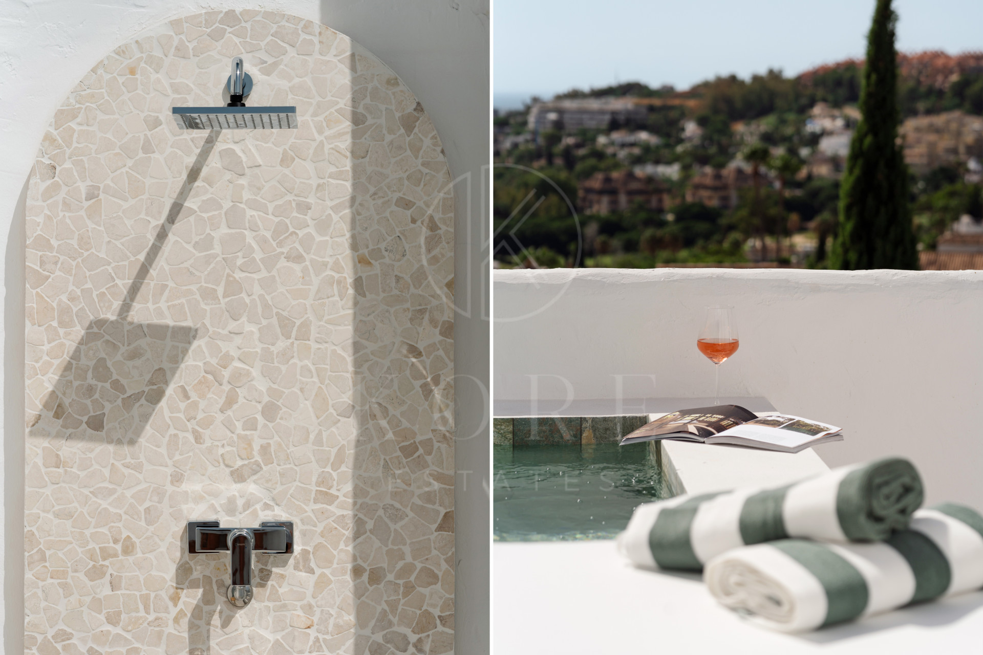 Upstairs, two more en-suite bedrooms each enjoy their own terrace. The master suite offers a walk-in closet and a spacious terrace complete with a private plunge pool, outdoor shower, and uninterrupted sea views, a true retreat.