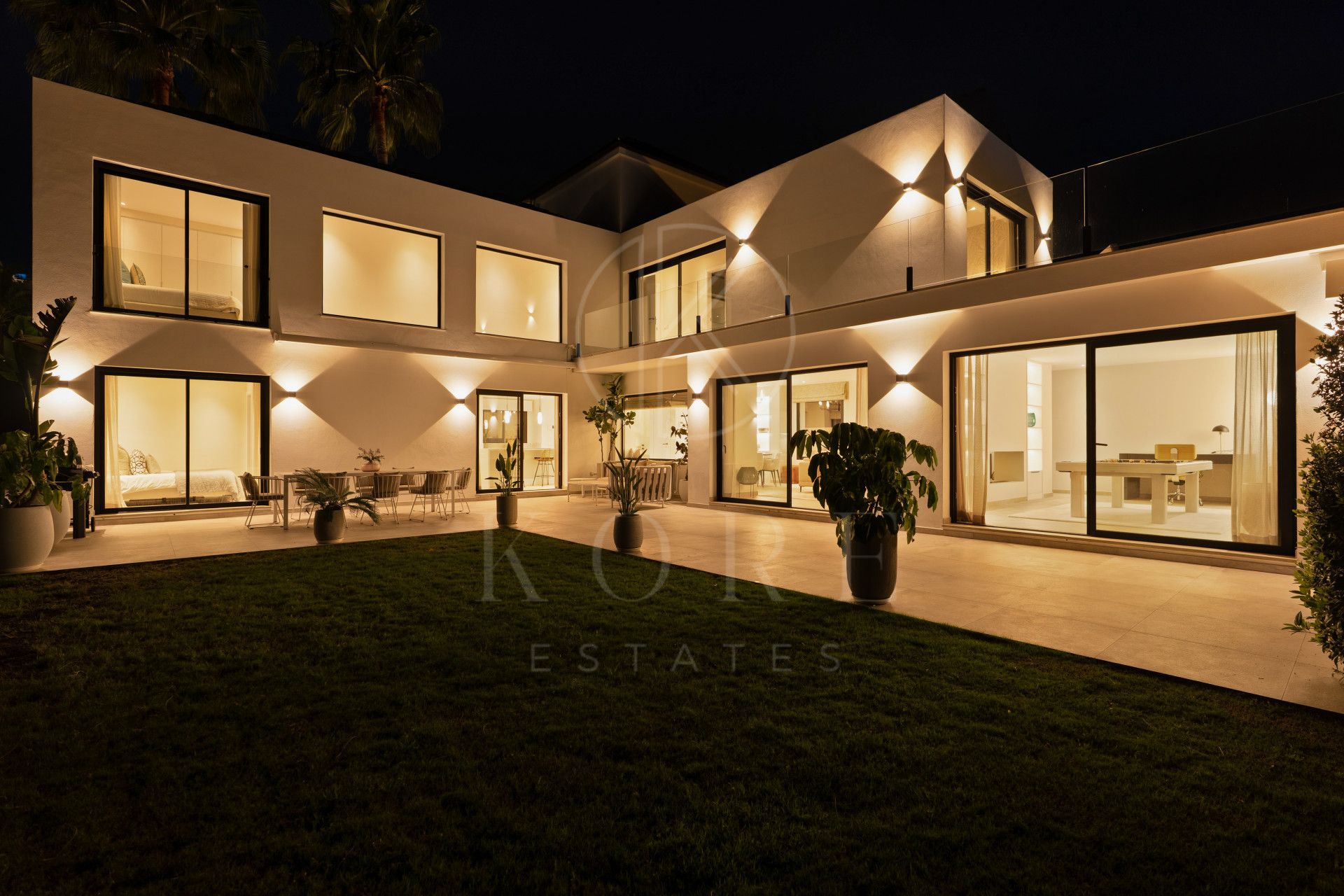 Upon arrival, the property immediately impresses with its clean architectural lines and sense of scale, framed by the iconic La Concha Mountain as a breath taking backdrop. Inside, the villa welcomes you with beautifully curated light-filled interiors, neutral spaces where expansive windows flood the home with natural light from every angle.