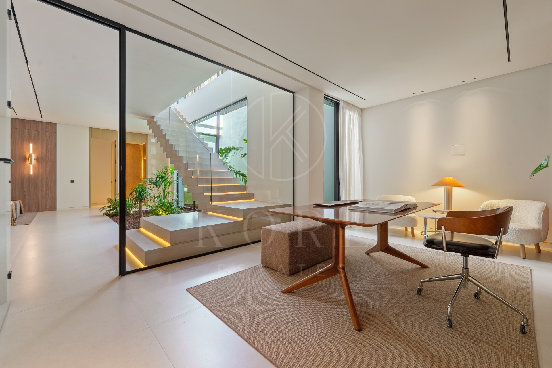 In addition, the property includes a home office, a playroom, and an en-suite guest bedroom, offering privacy and convenience. This bedroom provides access to the garden and pool area, enhancing the property’s functionality and appeal.