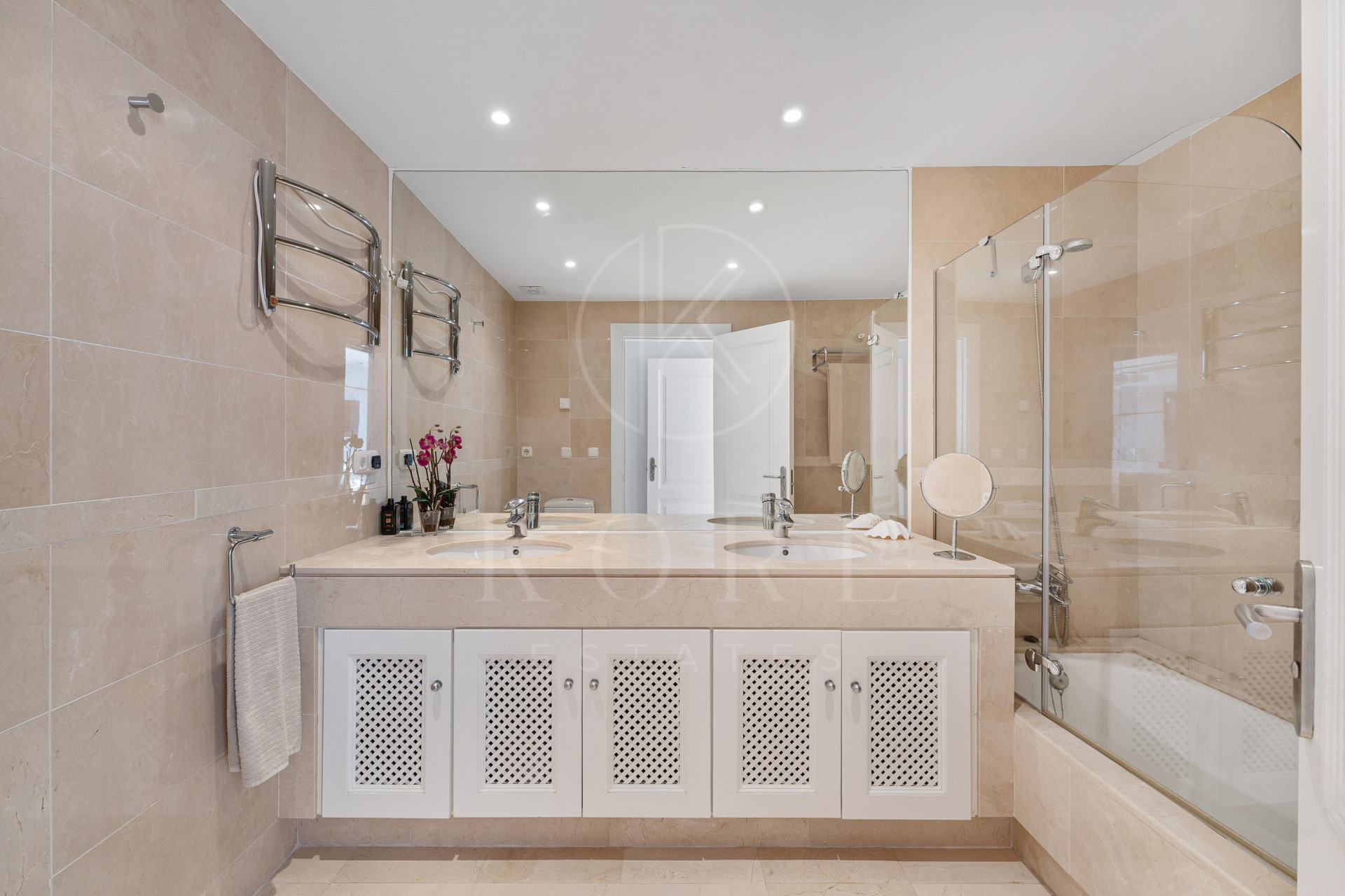 Additional features include a private elevator with direct access from the garage, two underground parking spaces, and a large storage room. The location is truly unbeatable — within walking distance to Aloha’s renowned restaurants, golf courses, shops, and just minutes from Puerto Banús. This property perfectly combines luxury, convenience, and spectacular views — an ideal choice for those seeking the ultimate Marbella lifestyle.