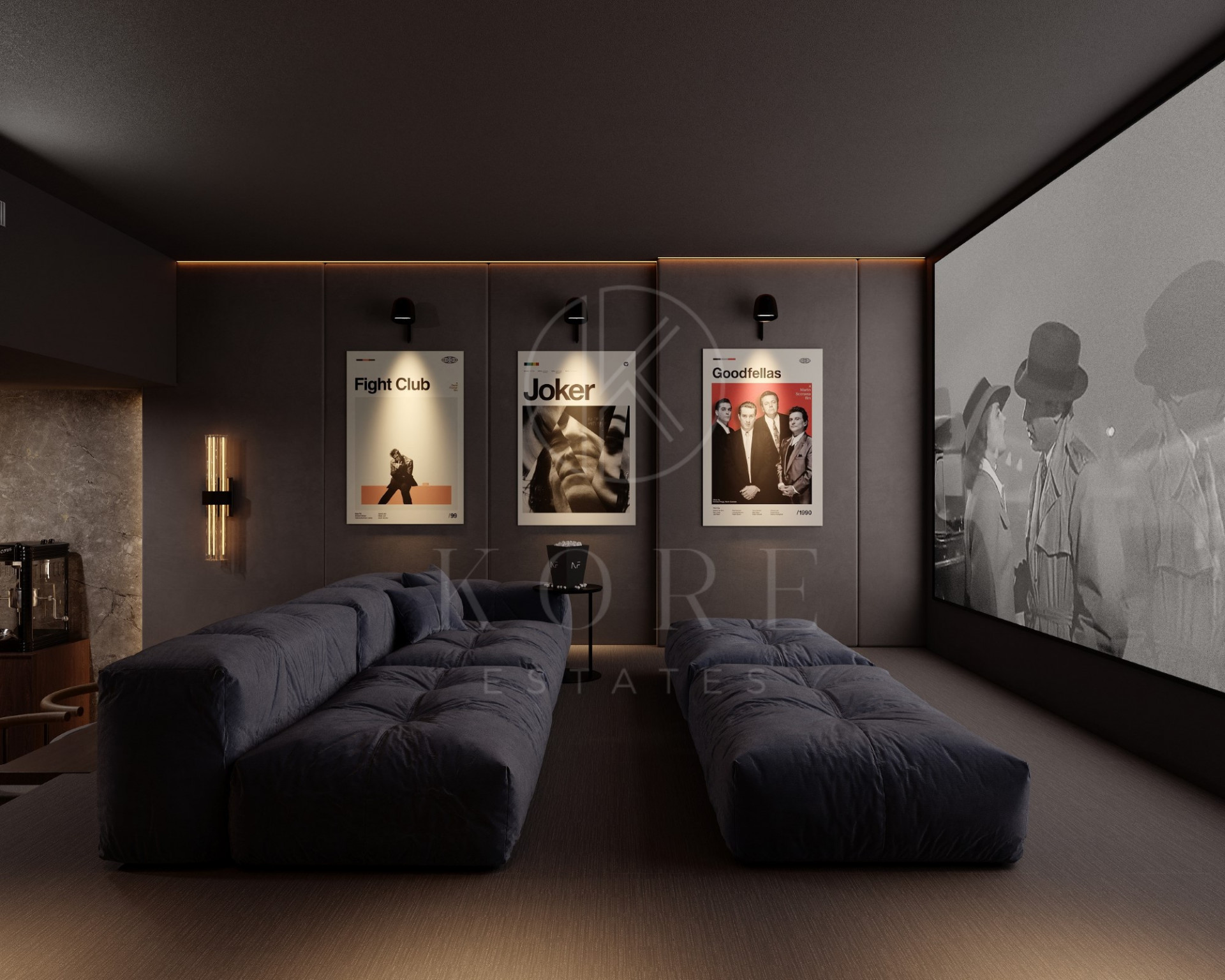 Noteworthy features include a jacuzzi, outdoor kitchen, hidden cinema room and functional home office. All the bedrooms with en-suite bathrooms are generously equipped with spacious walk-in wardrobes.