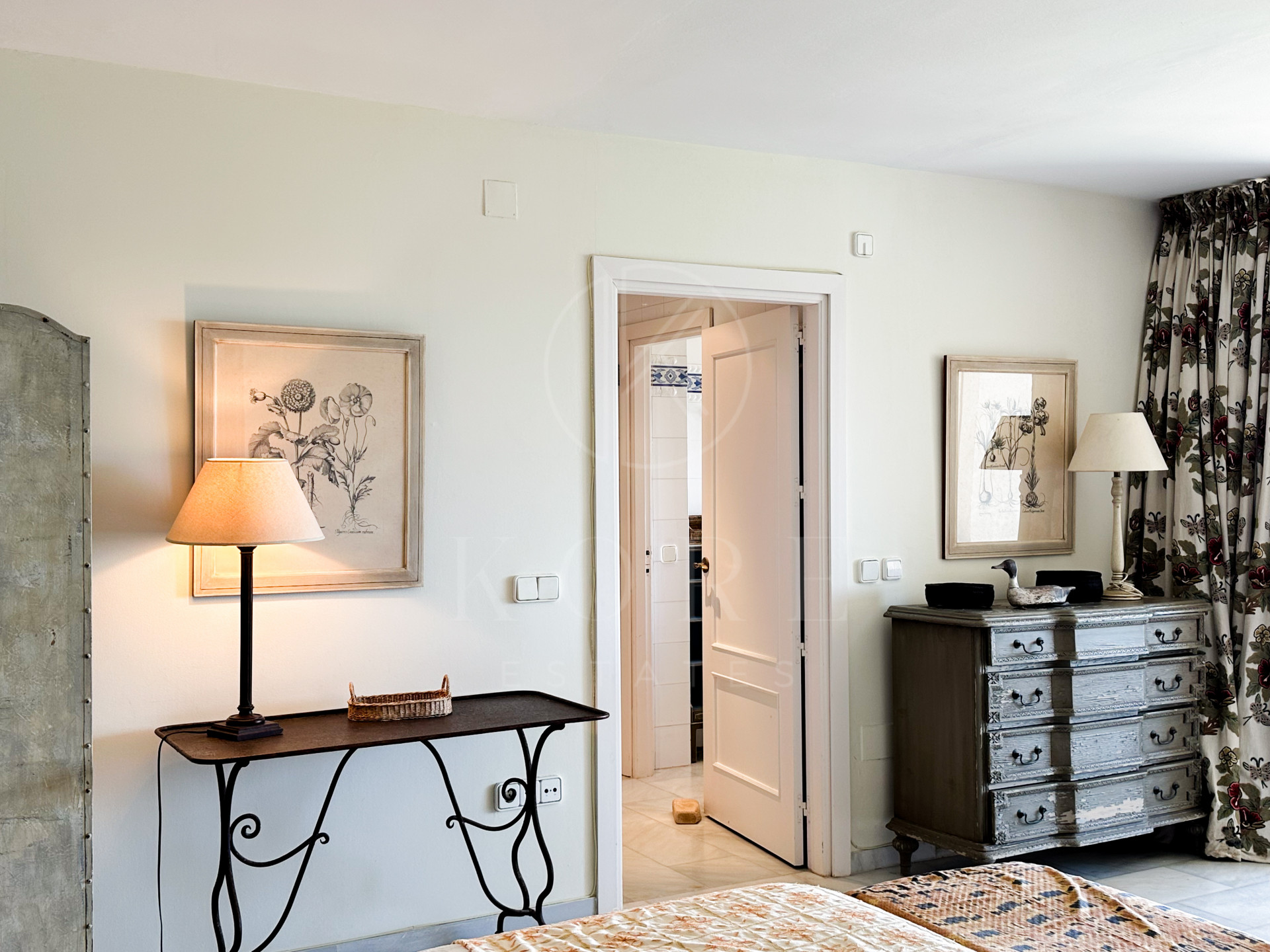 Three double bedrooms, all en-suite. The master suite includes two separate bathrooms and a large covered terrace with stunning sea views.