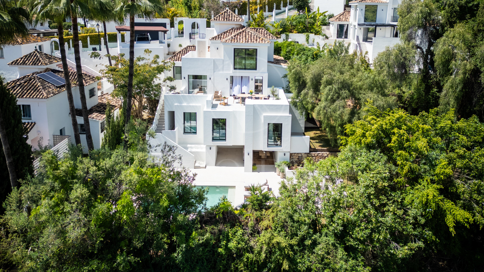 Welcome to Villa Lucalle, a contemporary masterpiece located in the picturesque grounds of Los Naranjos Hill Club in La Cerquilla, Nueva Andalucía.
