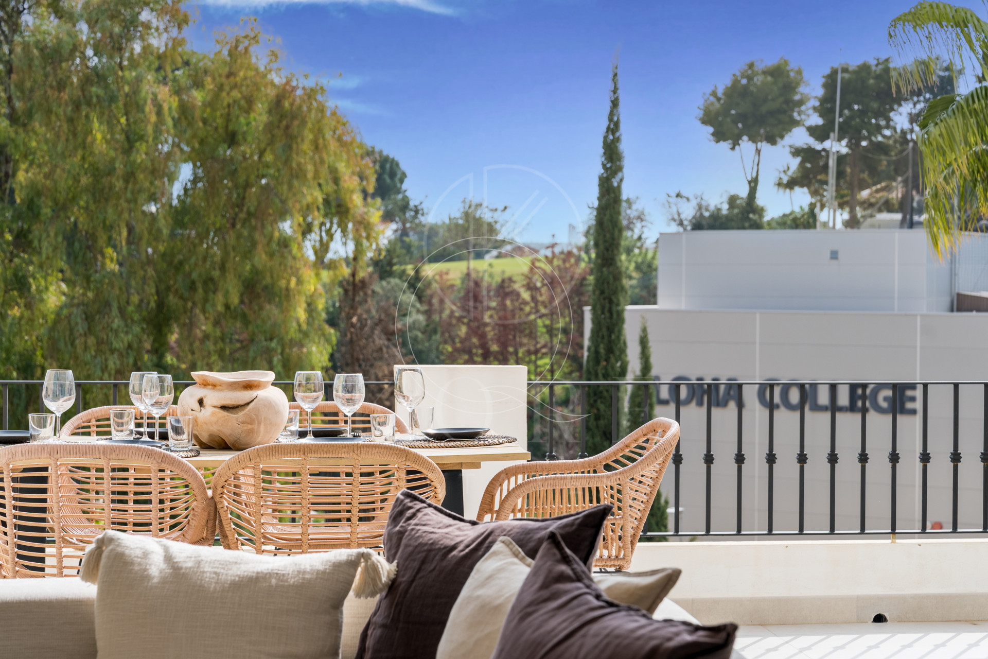 This renovated townhouse in Pinos de Aloha combines modern comfort with Mediterranean charm. Located in a quiet residential area near Aloha Golf Club, it offers a peaceful setting while being close to Puerto Banús, shops, and international schools, including the prestigious Aloha College.