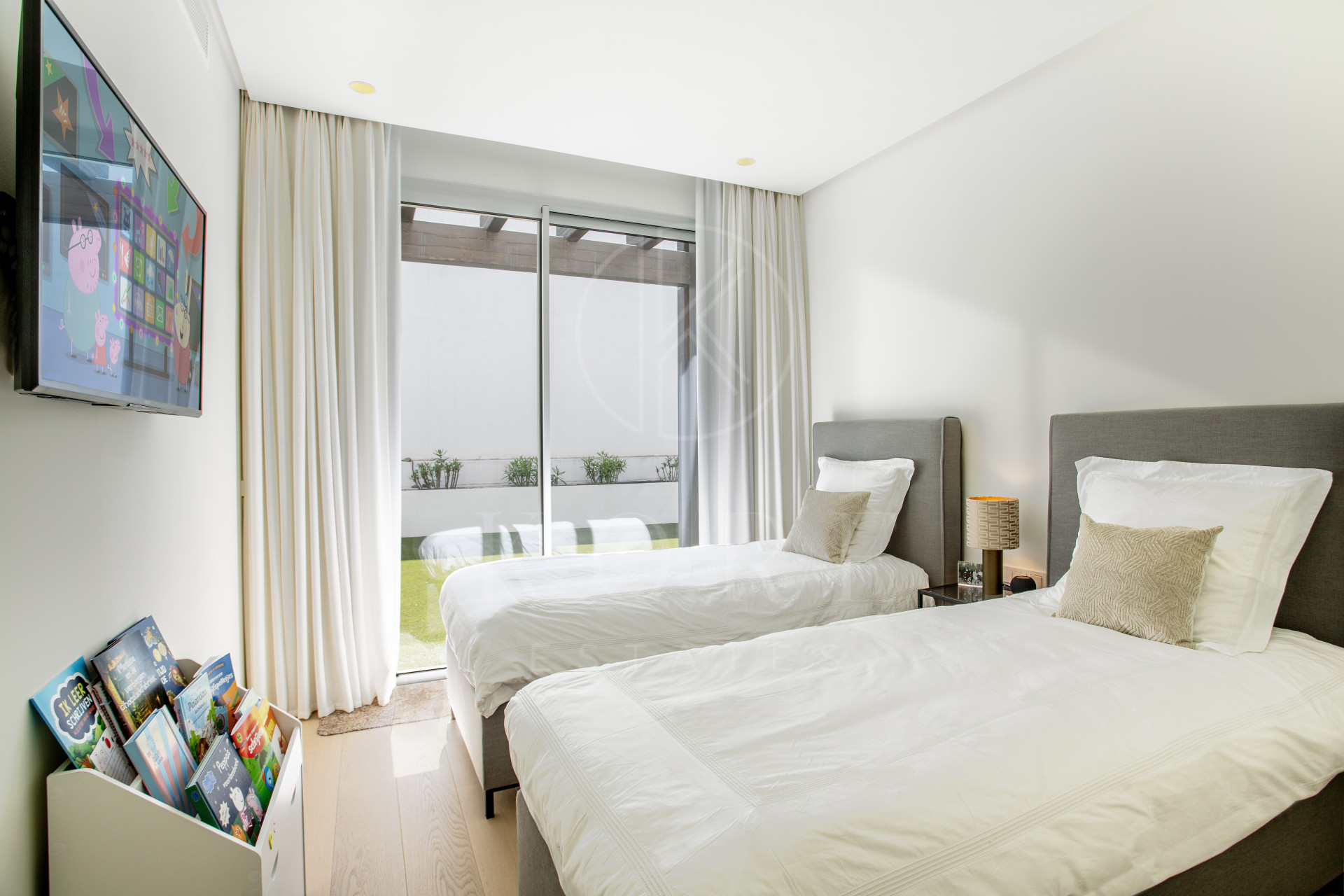 Security has been carefully considered throughout. The apartment is equipped with security cameras at both the front and rear, a full alarm system with sensors on all windows that can be controlled remotely, and metal rods discreetly integrated into the window frames, providing an added layer of protection without compromising aesthetics. These features are complemented by the development’s gated access and 24-hour security, ensuring a safe and secure environment for residents.