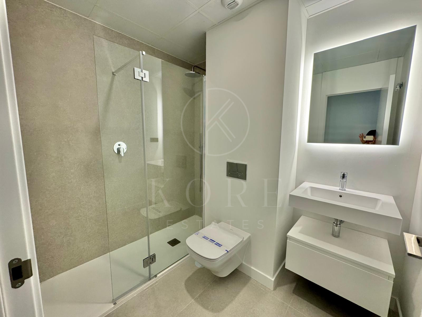 On the left side of the apartment, you will find three bedrooms and two full bathrooms, as well as a rear terrace. Every space stands out for its brightness and excellent quality finishes.