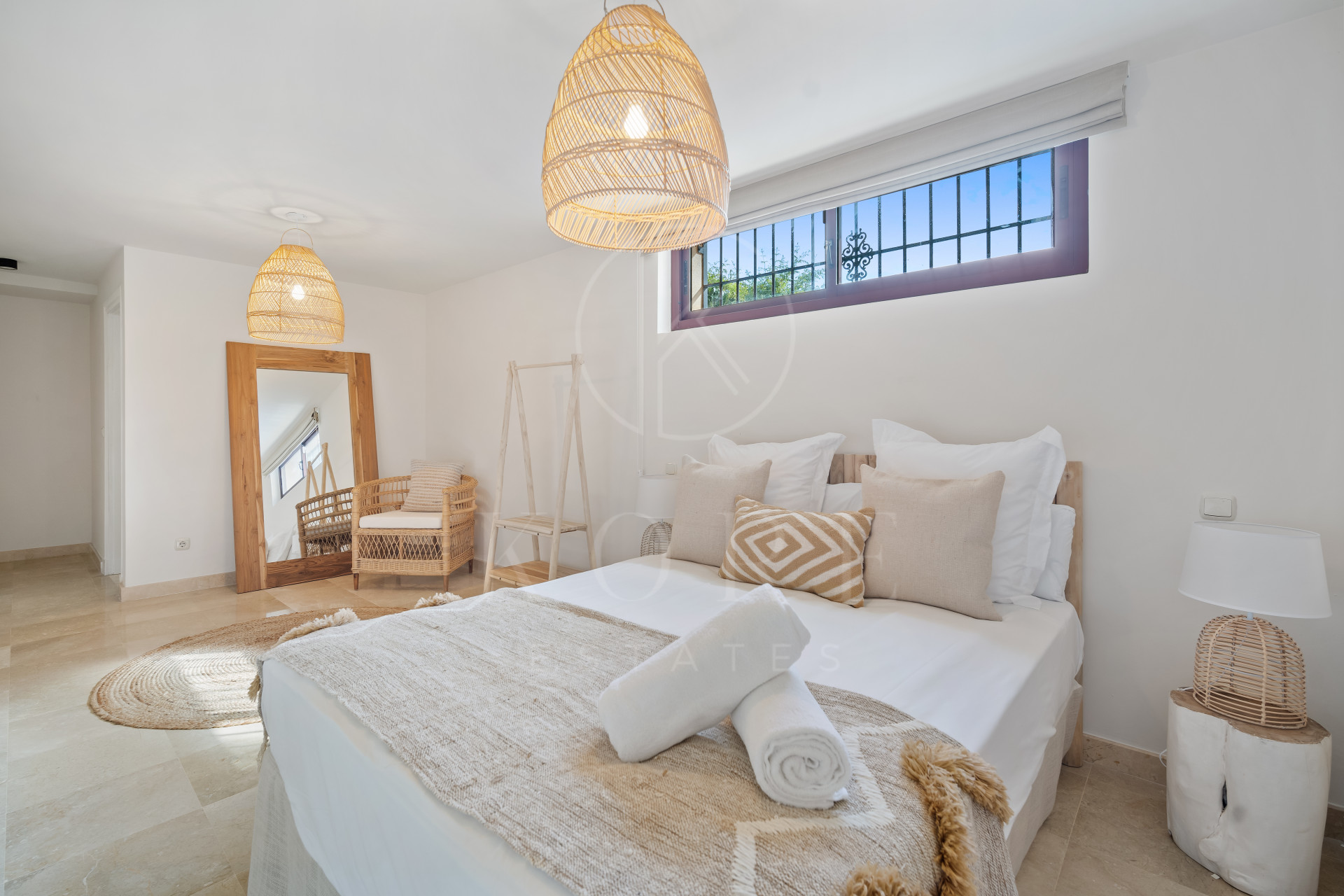 This spacious 5 bedrooms villa is situated in the gated community of Vasari Resort, Puerto Banus. Calm and very well maintained community just few steps from all the amenities and famous Puerto Banus. Perfect combination for those seeking tranquillity, but being next door to the active social life.