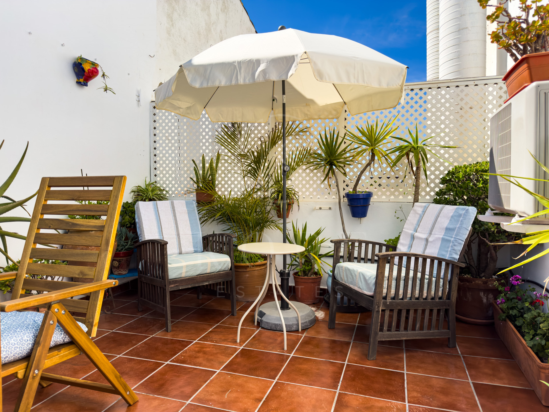 This penthouse is distributed in a functional way to satisfy the most demanding needs. It has 2 spacious bedrooms, one of them with an en-suite bathroom, and an additional bathroom. The property is in excellent condition and is completely refurbished and furnished, ready to move into. The kitchen is fully equipped with electrical appliances, it has a large terrace perfect for enjoying relaxing moments with partial views of the sea and the marina. It has details such as double glazing, fitted wardrobes, and air conditioning to maintain a perfect temperature inside the property.