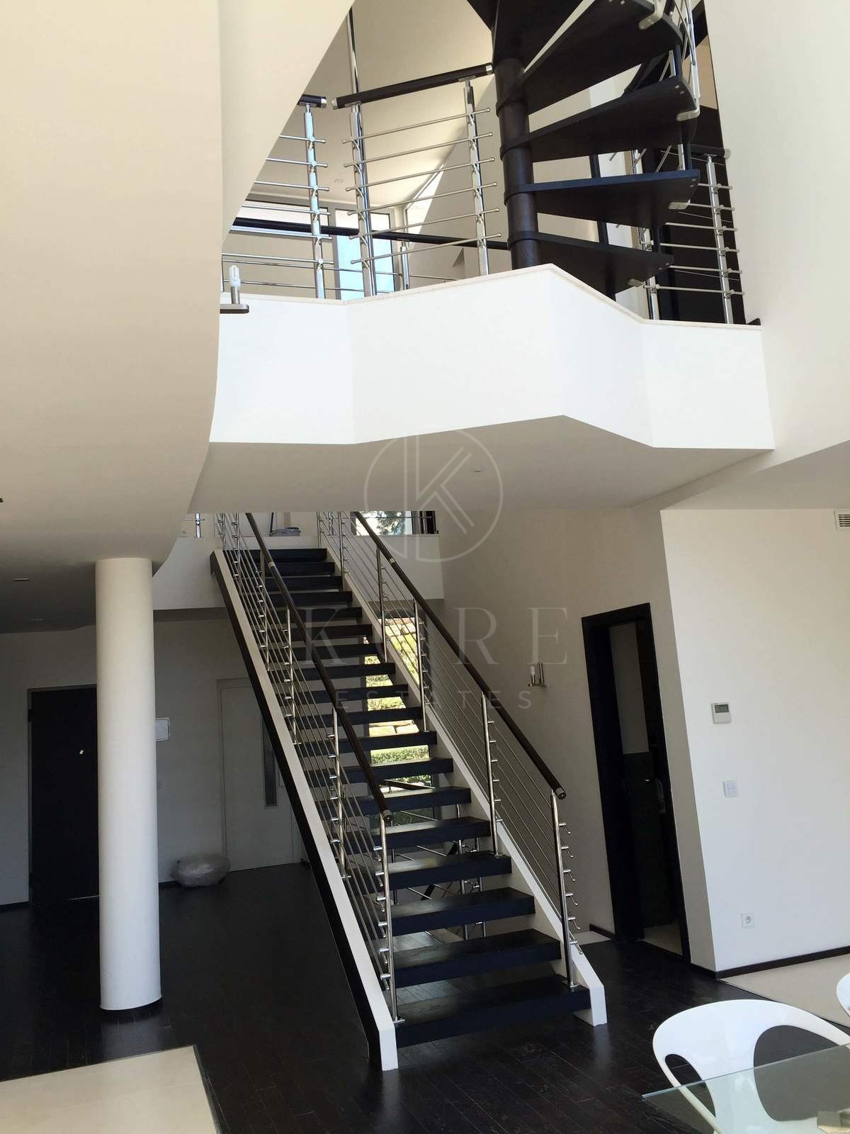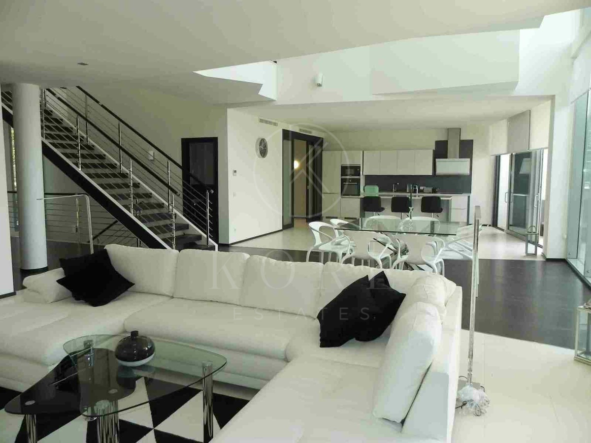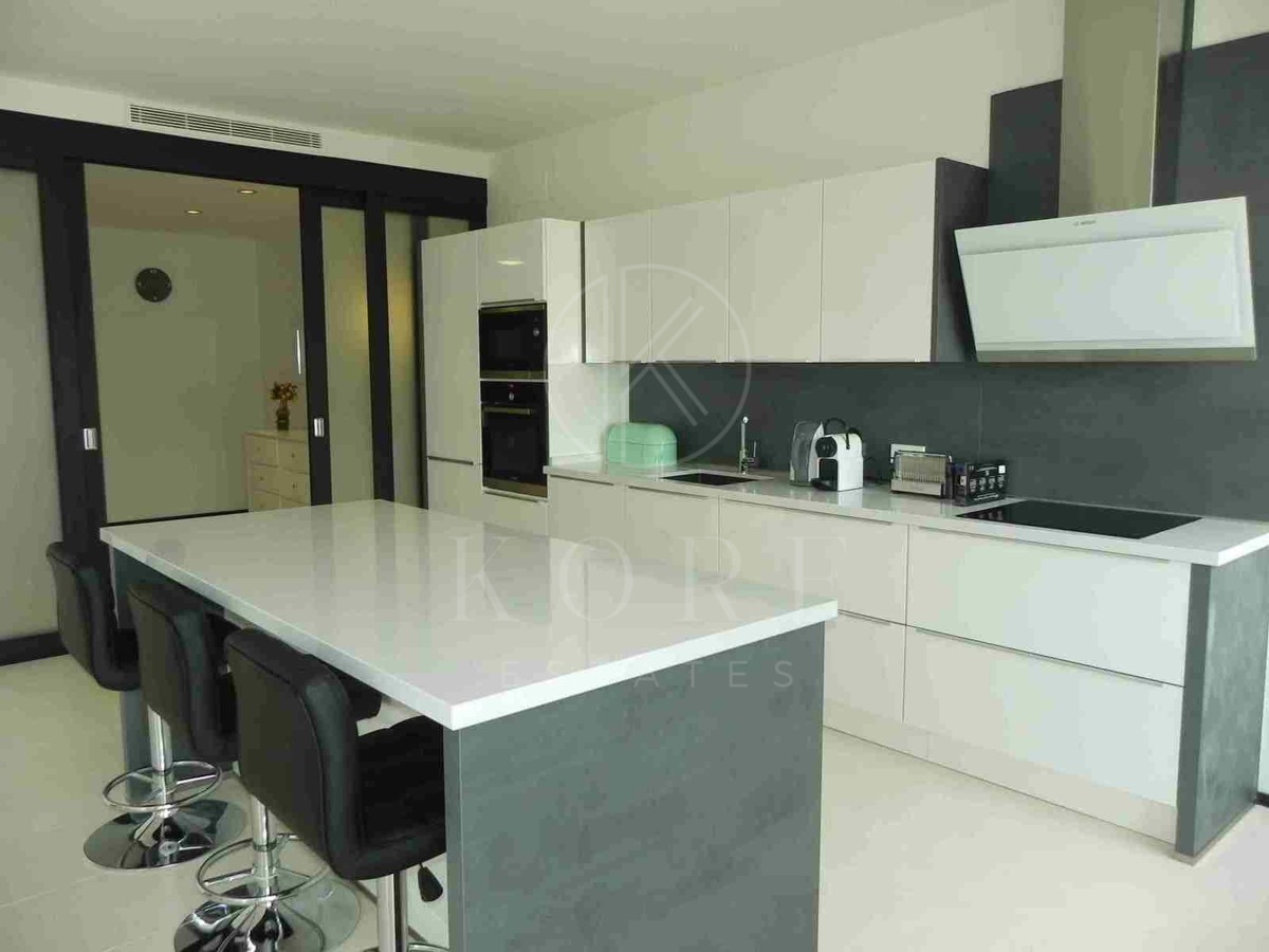 The home stands out for its spacious layout, natural light and contemporary design. It features four bedrooms, each with its own en-suite bathroom equipped with a hydromassage bathtub and separate shower, as well as a guest toilet. The large open-plan living area connects seamlessly with a modern kitchen and leads out to the private garden, where a beautiful pool creates the perfect space to relax throughout the year. Two additional terraces offer ideal spots to enjoy the panoramic views, and the property includes a private garage for two cars.