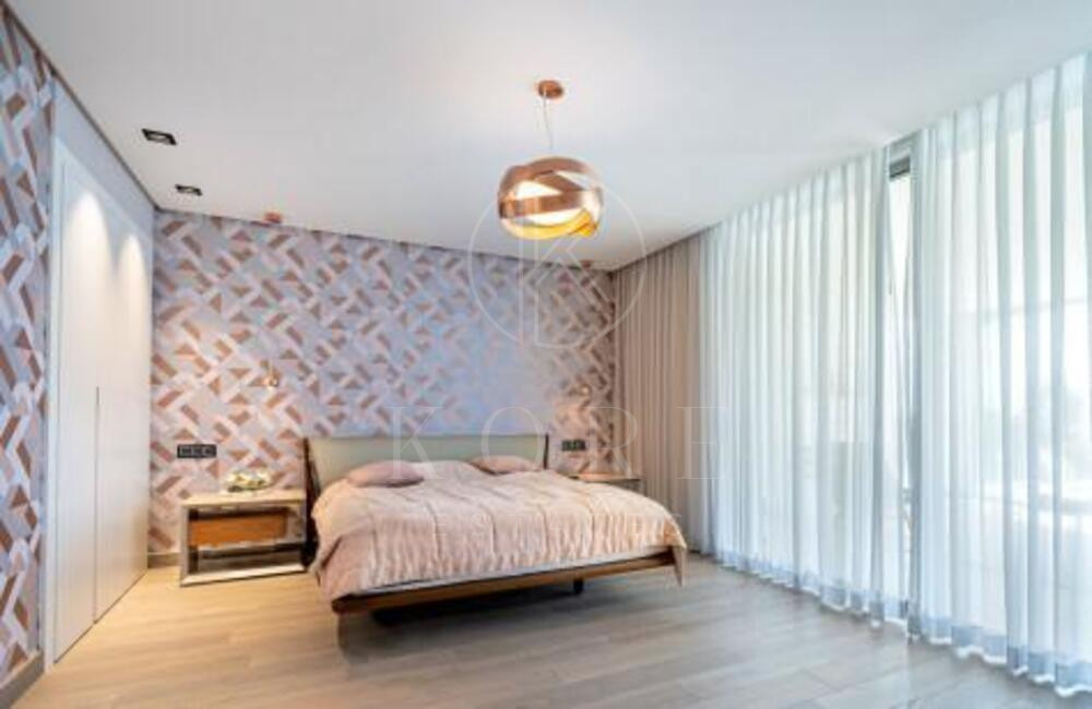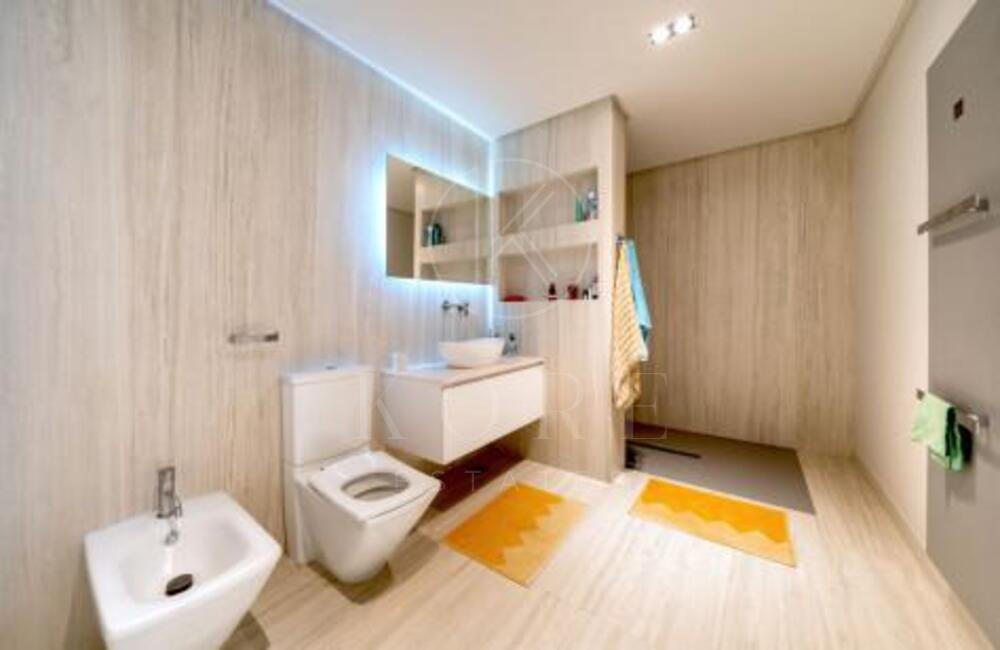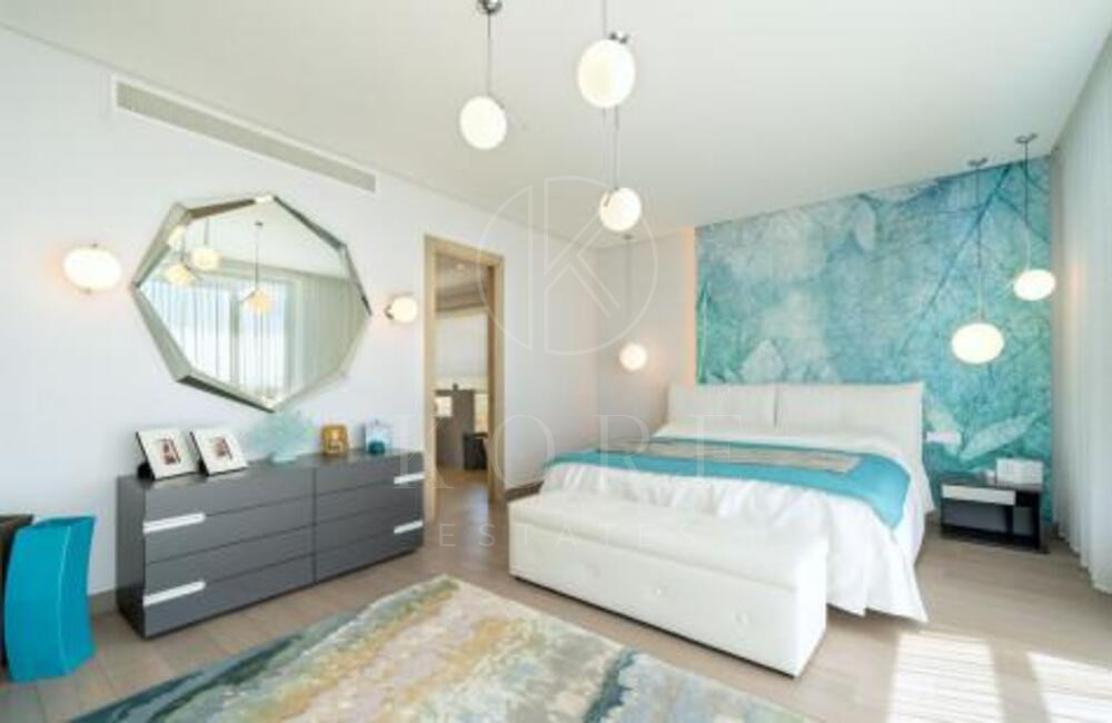 The villa, modern and elegantly designed, has 6 spacious bedrooms and 7 luxurious bathrooms. On the entrance floor there is a bright living room, an open concept kitchen with dining room, a bedroom with en suite bathroom and private terrace, as well as a guest toilet. The spacious terraces are ideal for entertainment, equipped with a barbecue area, swimming pool and a carefully cared garden.