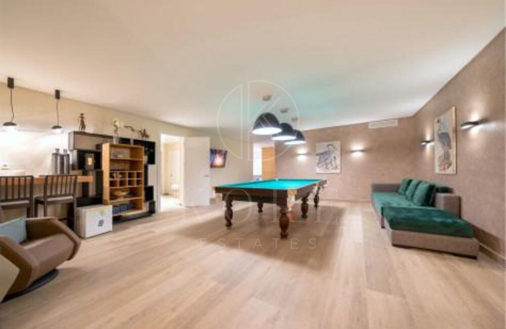 The ground floor is a true oasis of well-being, with two en-suite bedrooms, a sauna, a Turkish bath, a gym, a games room and cinema, a laundry room and a garage with capacity for 4 cars. The property also has a large garden and additional external parking.
