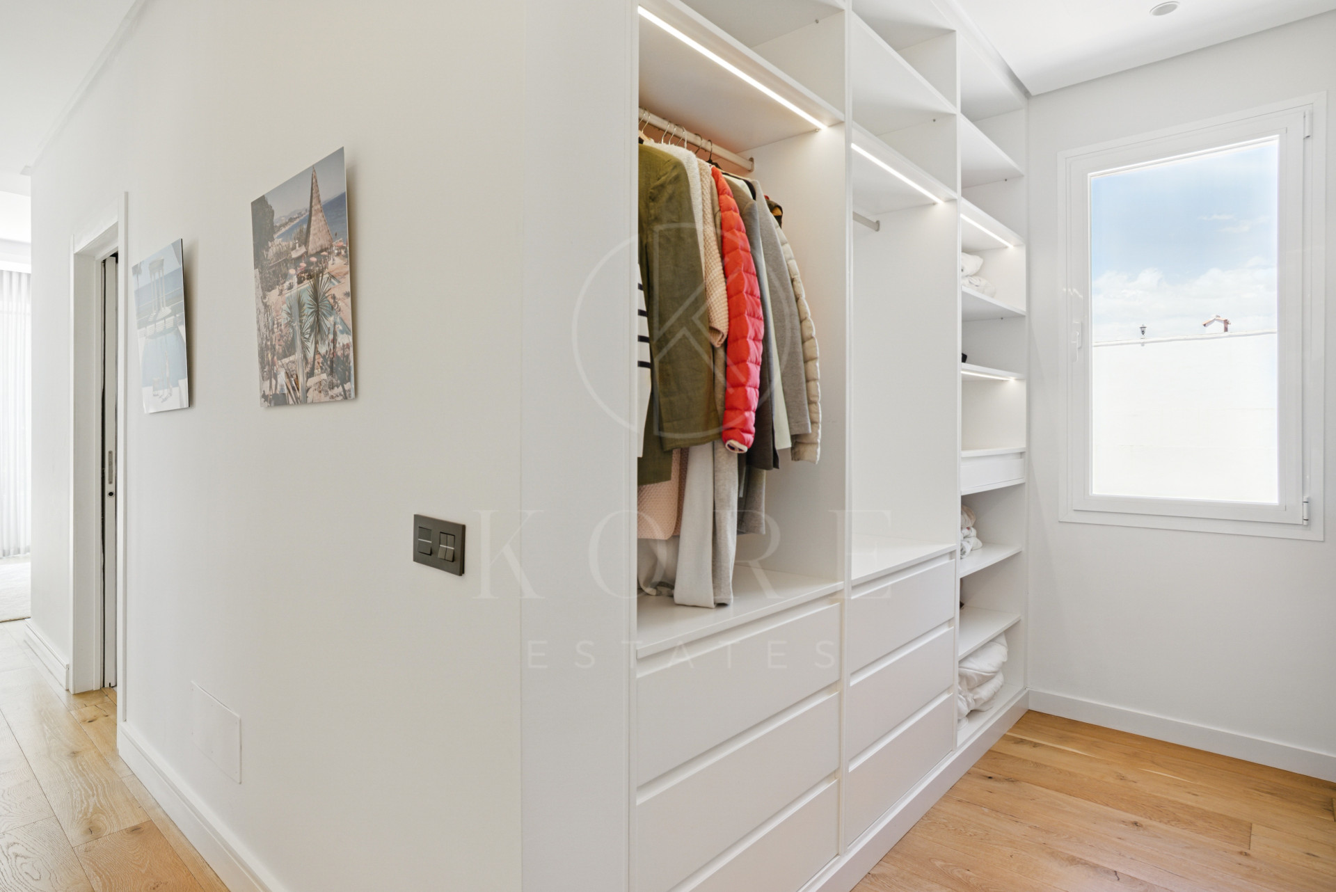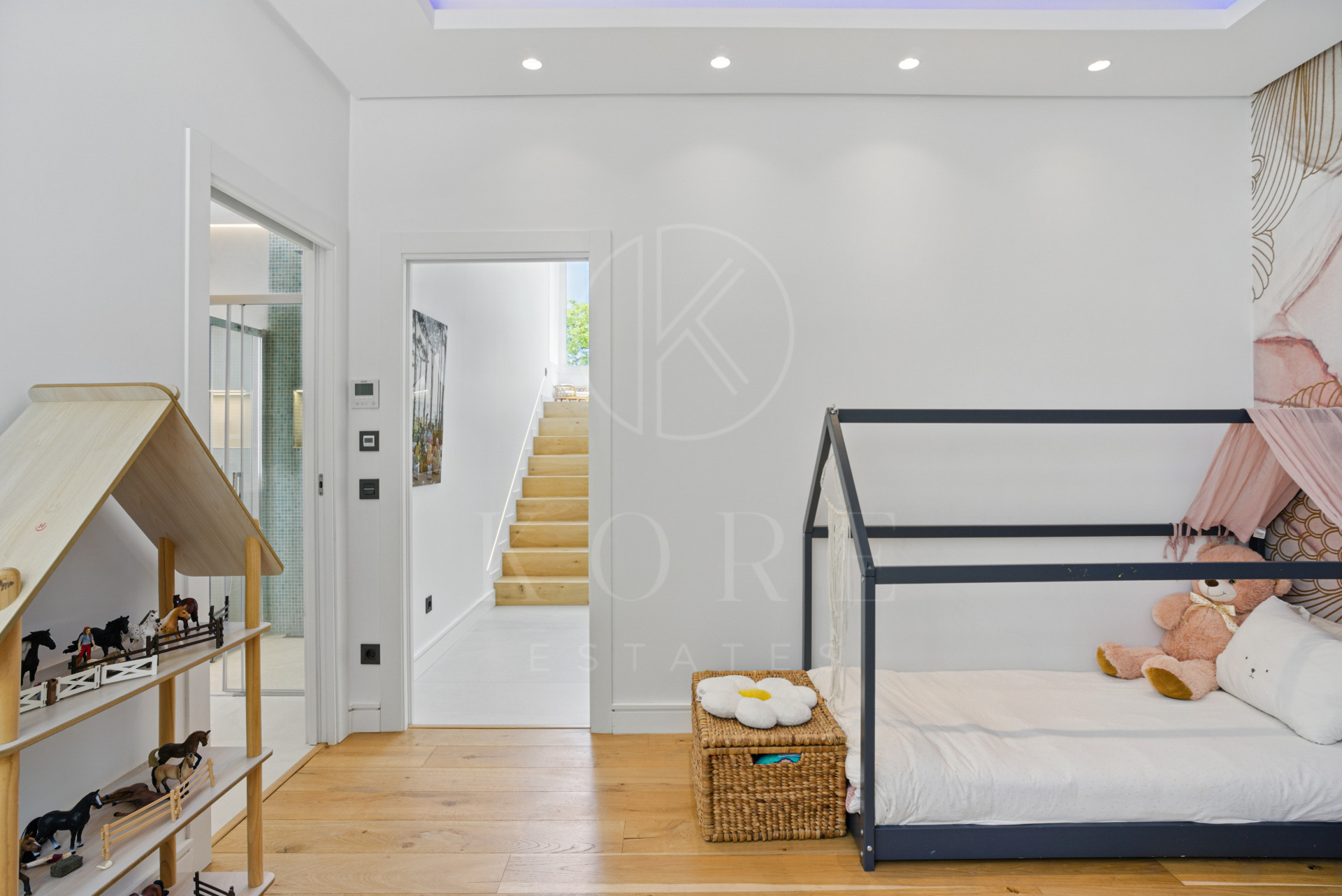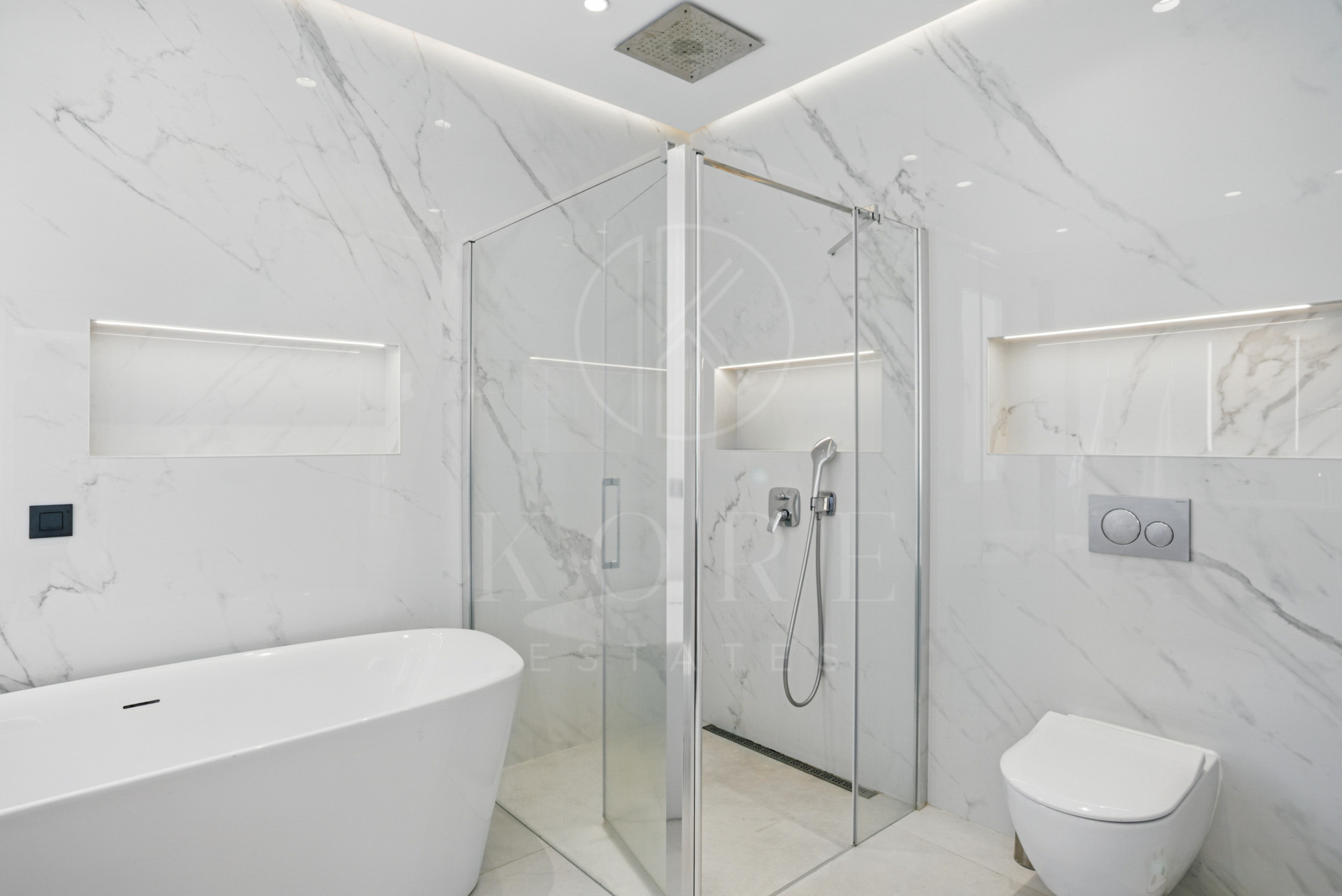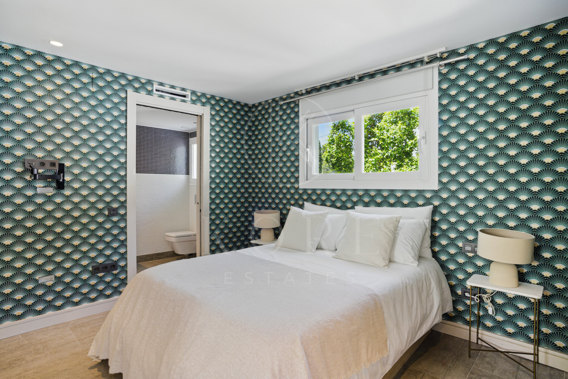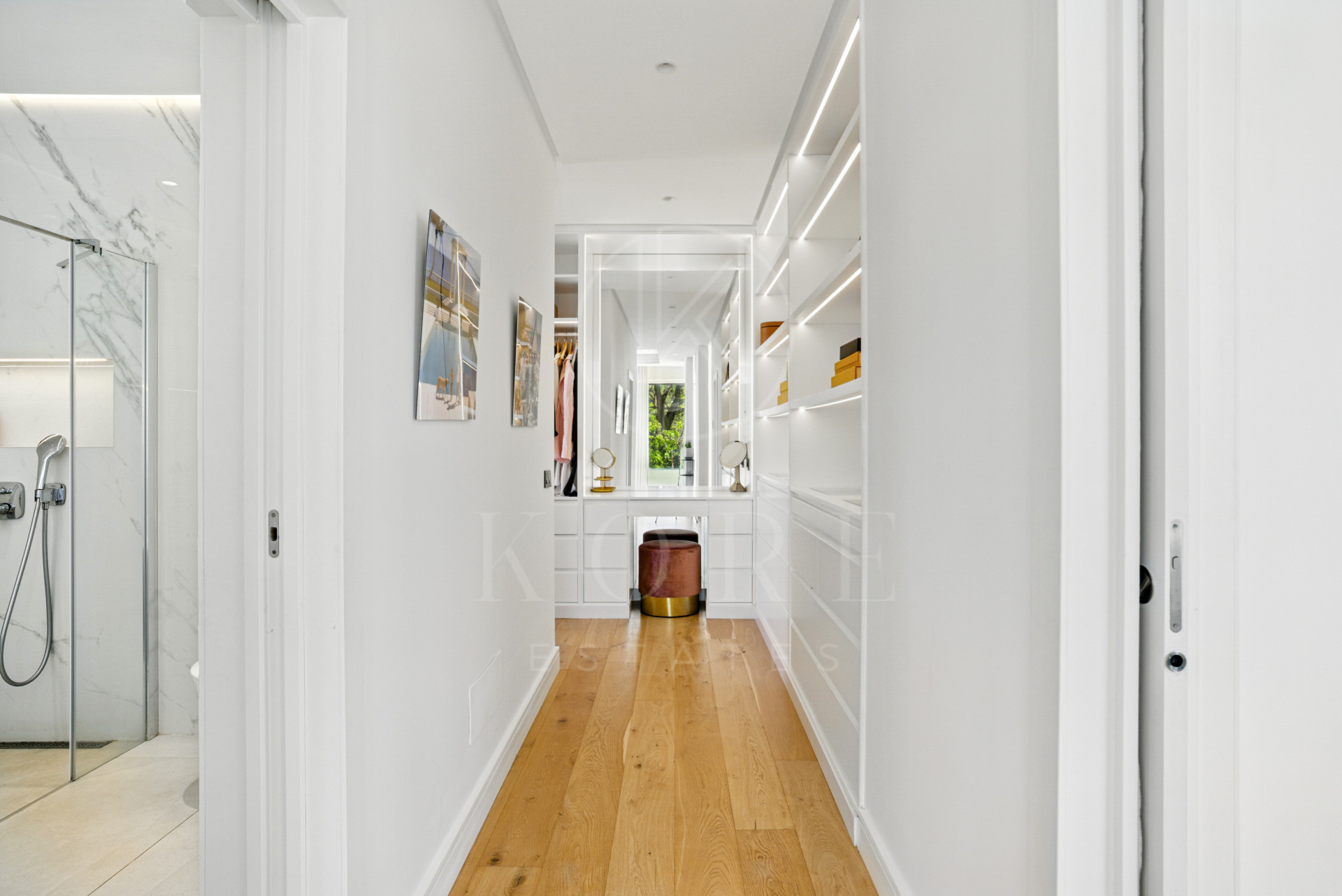 Modern, south facing six bedroom villa with sea views located in Nueva Andalucia, Marbella. Situated in a quiet and desirable area of lower Nueva Andalucía, this fully renovated contemporary villa offers a unique blend of luxury, comfort, and versatility. Designed with modern living in mind, the property includes six spacious bedrooms across the main house and a private guest house with a separate entrance, ideal for visitors. The villa features bright open-plan living areas, a high-spec kitchen, and a master suite with a walk-in closet and en-suite bathroom. Outdoor amenities include a heated saltwater pool, jacuzzi, gym area, and beautifully landscaped gardens, perfect for relaxing or entertaining. A newly added upper floor and rooftop solarium provide sweeping sea views, while the closed garage and additional parking for two cars add convenience. Just a short walk from local shops, restaurants, and everyday essentials, this home is equally suited as a stylish family residence or a smart investment property.