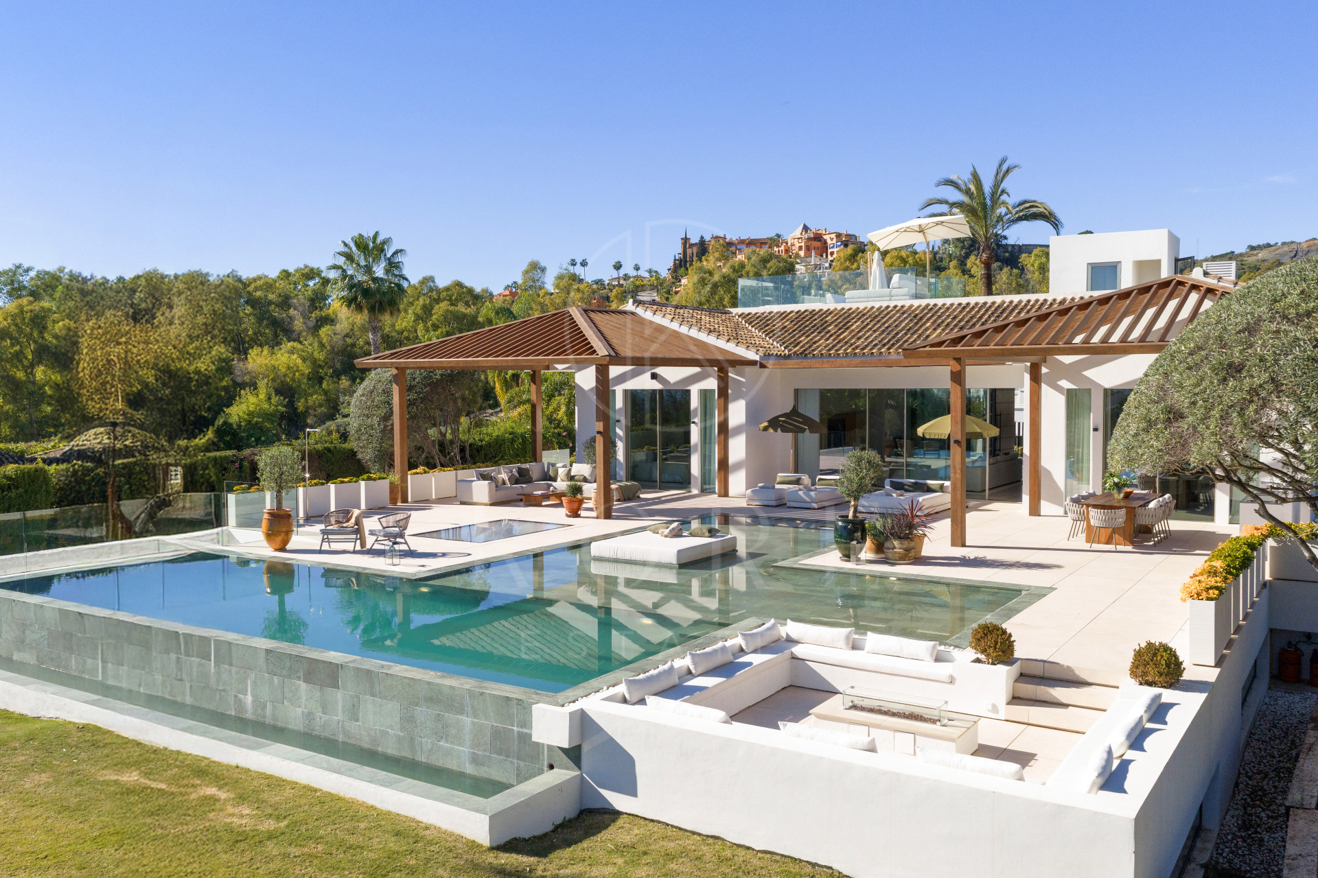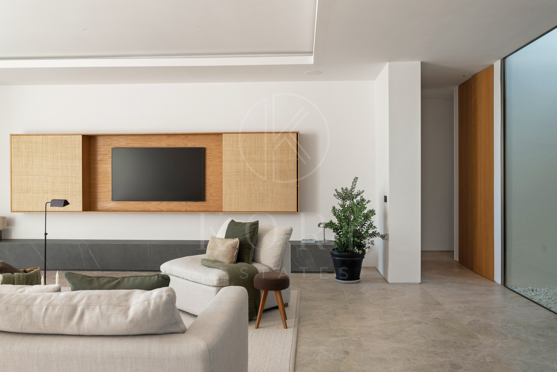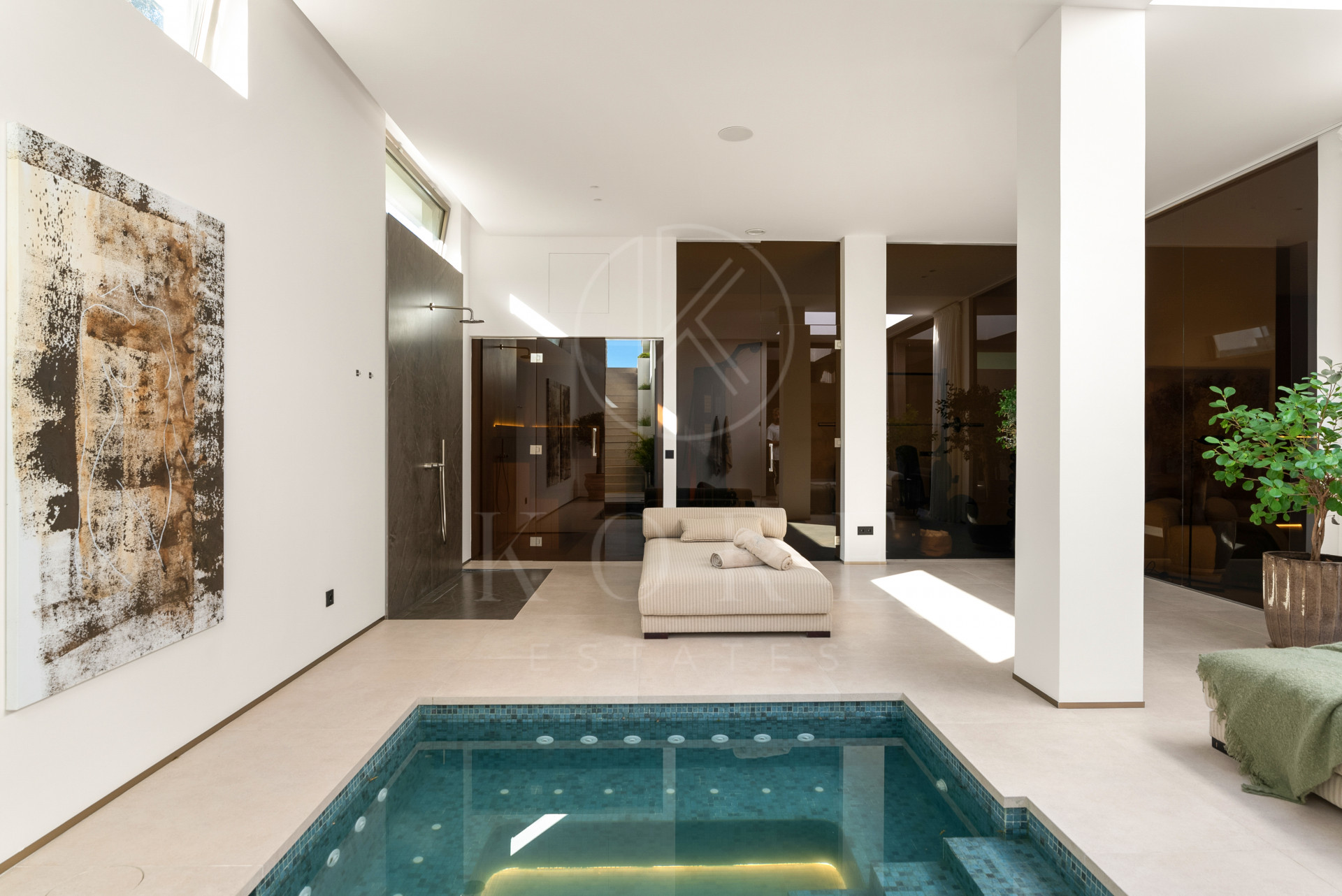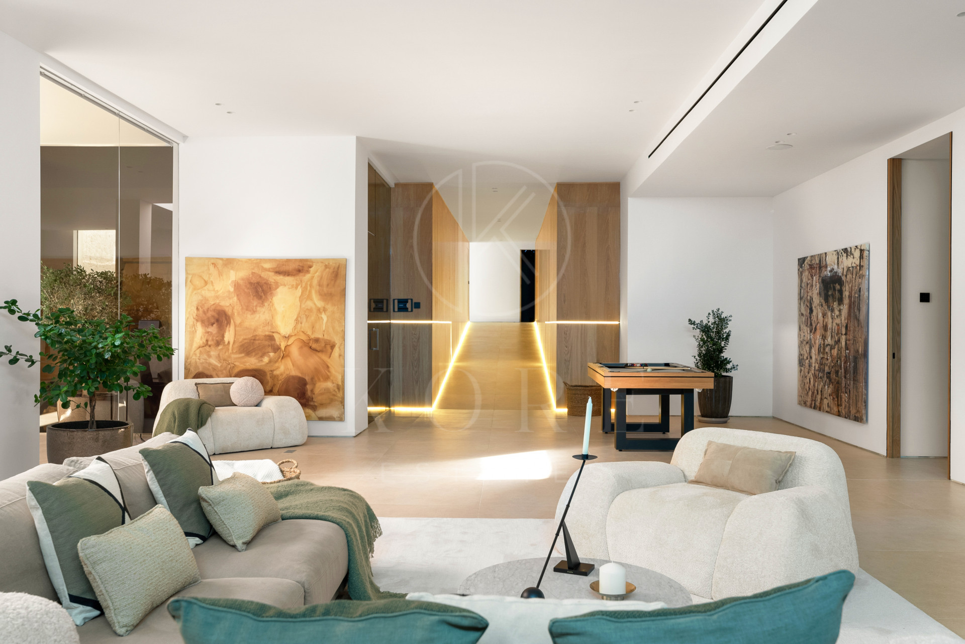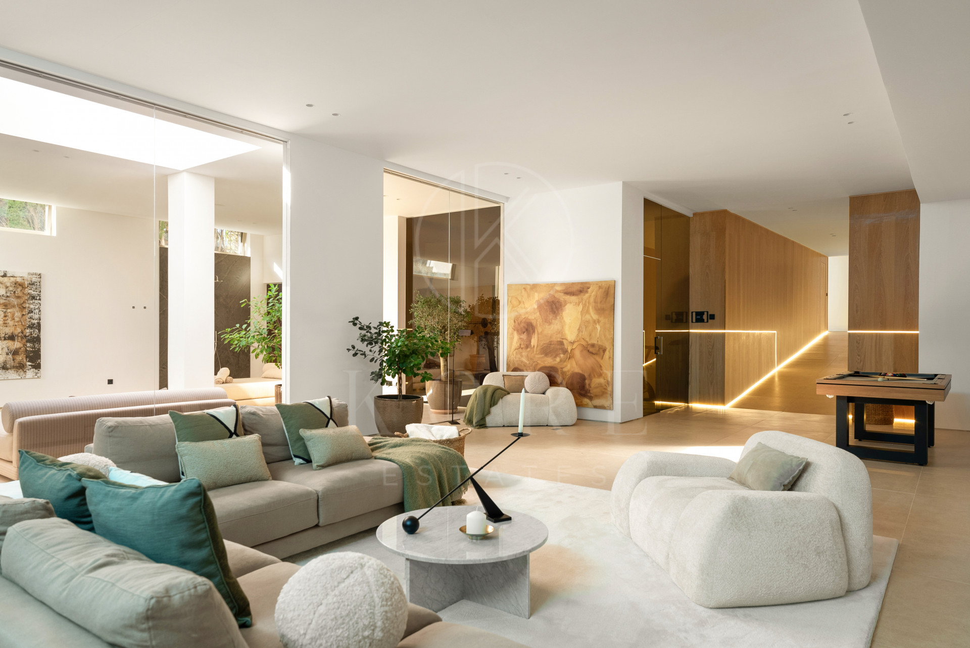 Designed for both everyday comfort and holidays, the property features an infinity pool overlooking the golf course, a private spa with sauna and jacuzzi, a gym, home cinema, and an entertainment room. A complete retreat for those who value space, privacy, and quality living in Marbella.