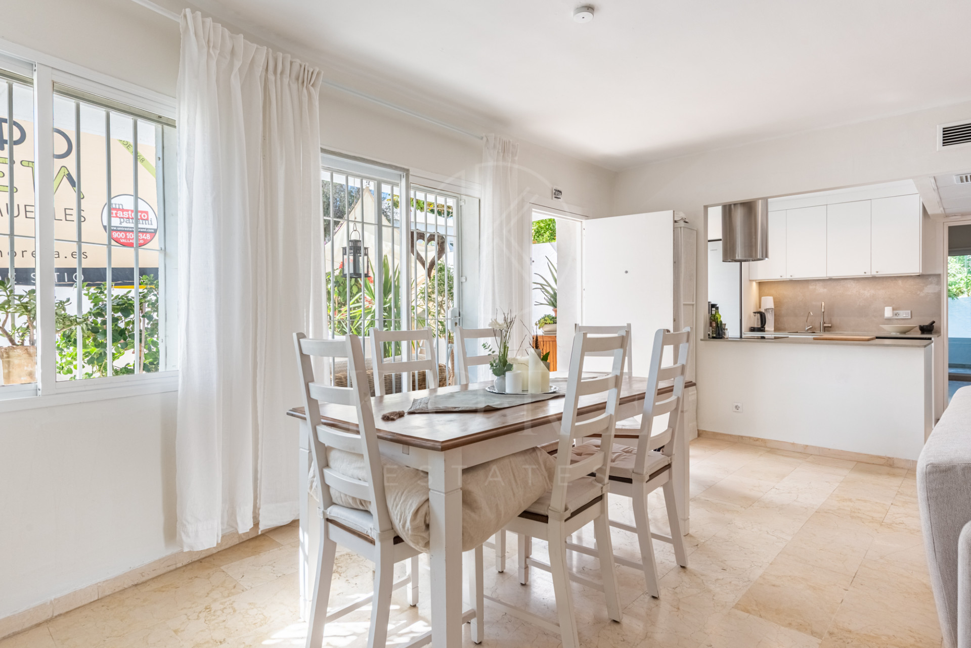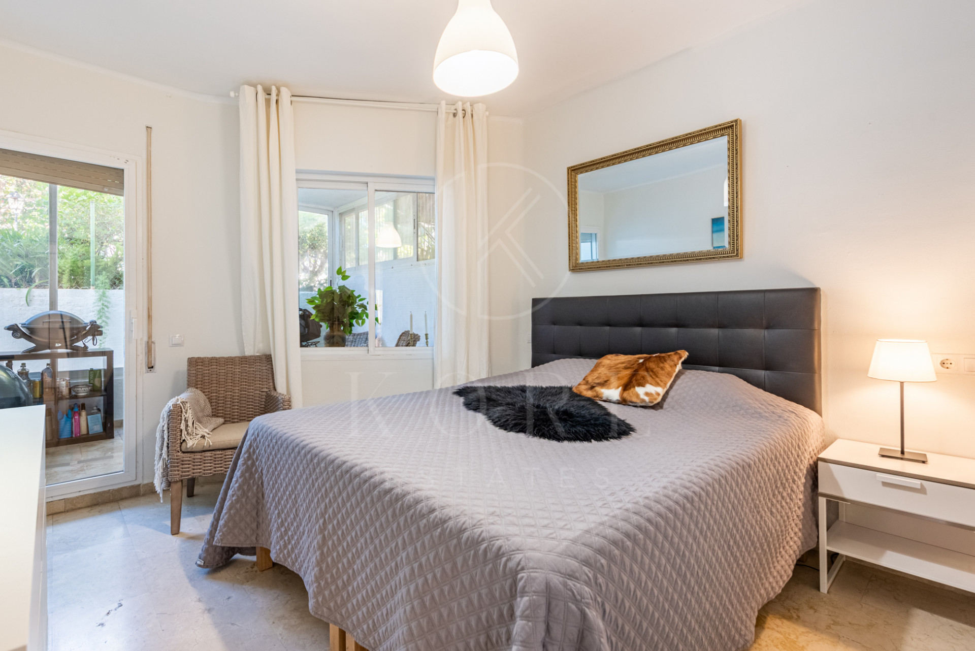 Beautiful two bedroom ground floor apartment, located in the sought-after Birdie Club community in Río Real, Marbella, this renovated property offers a peaceful and secure setting just a short walk from the beach, close to the golf club, and next to the future Four Seasons resort. Fully refurbished in 2021, the apartment features bright and spacious interiors and its own private entrance. This home includes two bedrooms with built-in wardrobes and access to a glazed east-facing terrace, one bathroom, and a comfortable living area with an open-plan kitchen that leads directly to the main west-facing terrace, perfect for enjoying the afternoon sun and the quiet surroundings. The community offers well-maintained gardens, a large communal saltwater swimming pool, and a separate children’s pool, creating a relaxed, resort-style atmosphere all year round. The property is sold fully furnished and includes a private parking space, with additional street parking available.