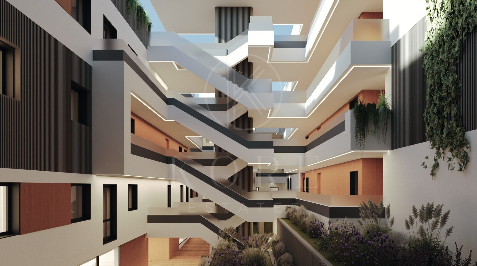 Inside, comfort is guaranteed with LED lighting systems, porcelain floors, insulating fake ceilings and partitions with camera and mineral wool. And on the outside, common areas cared for in detail, swimming pools with under lighting in the attic, low water consumption gardens and garages with pre-installation for electric vehicle loading.