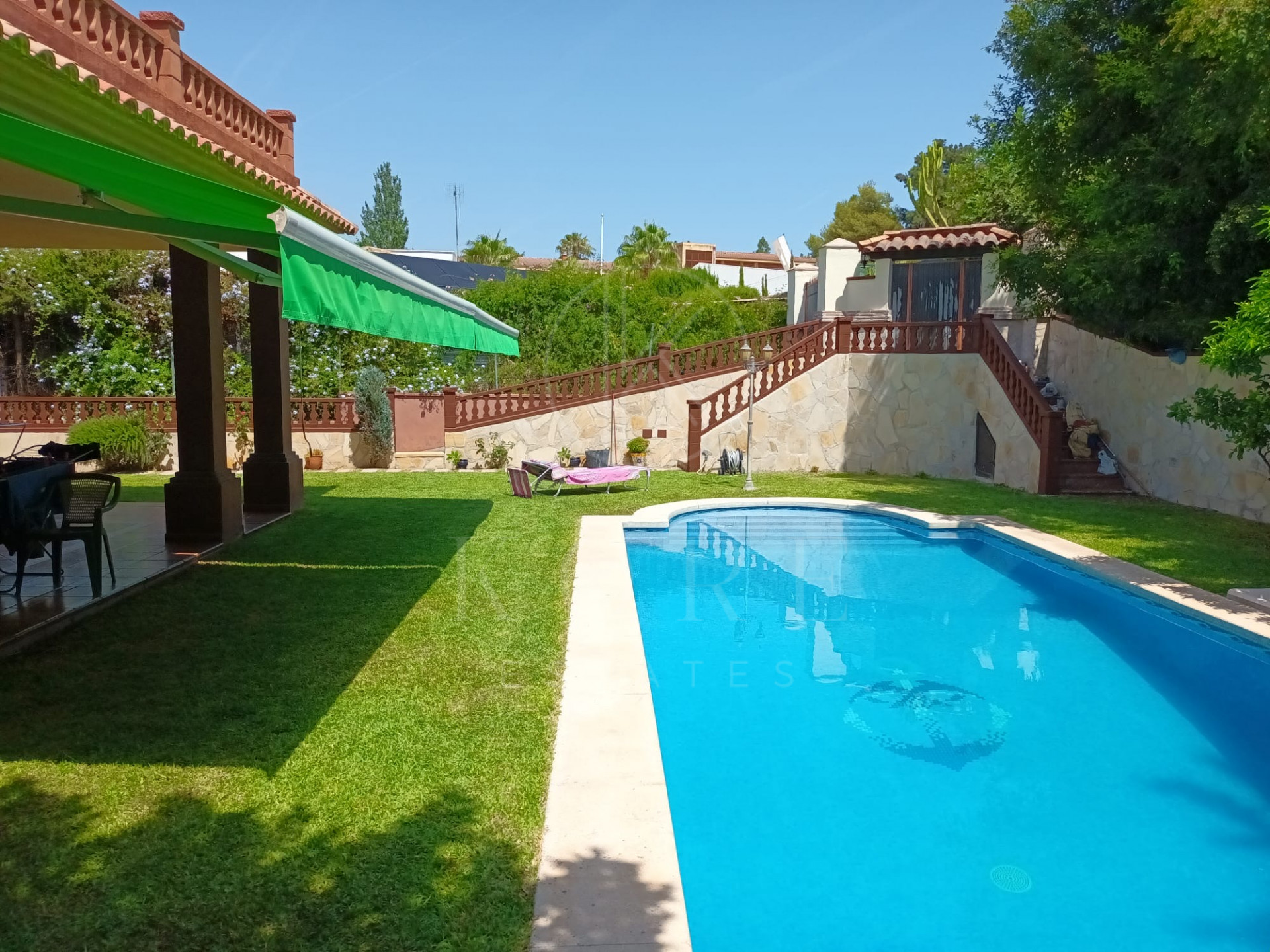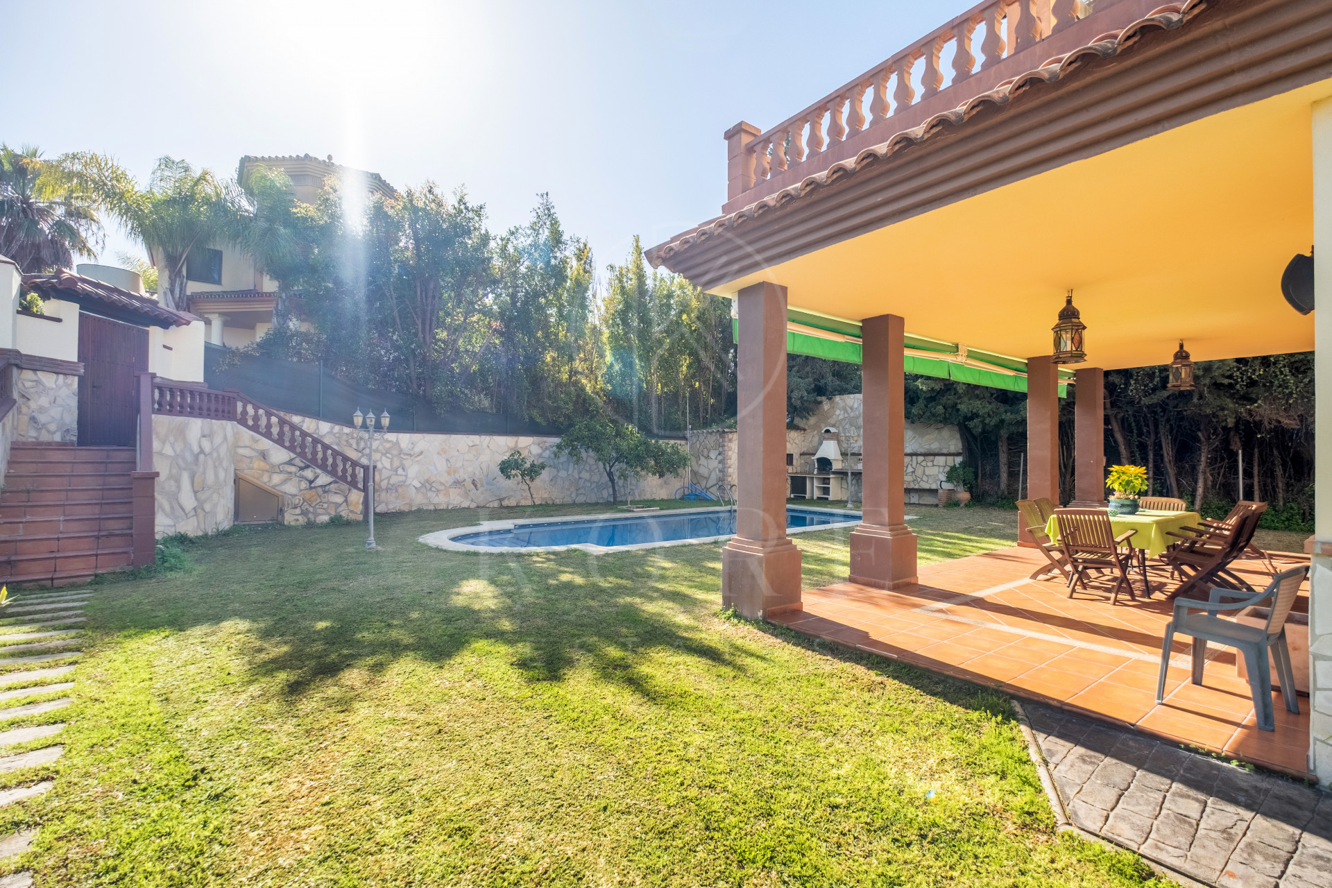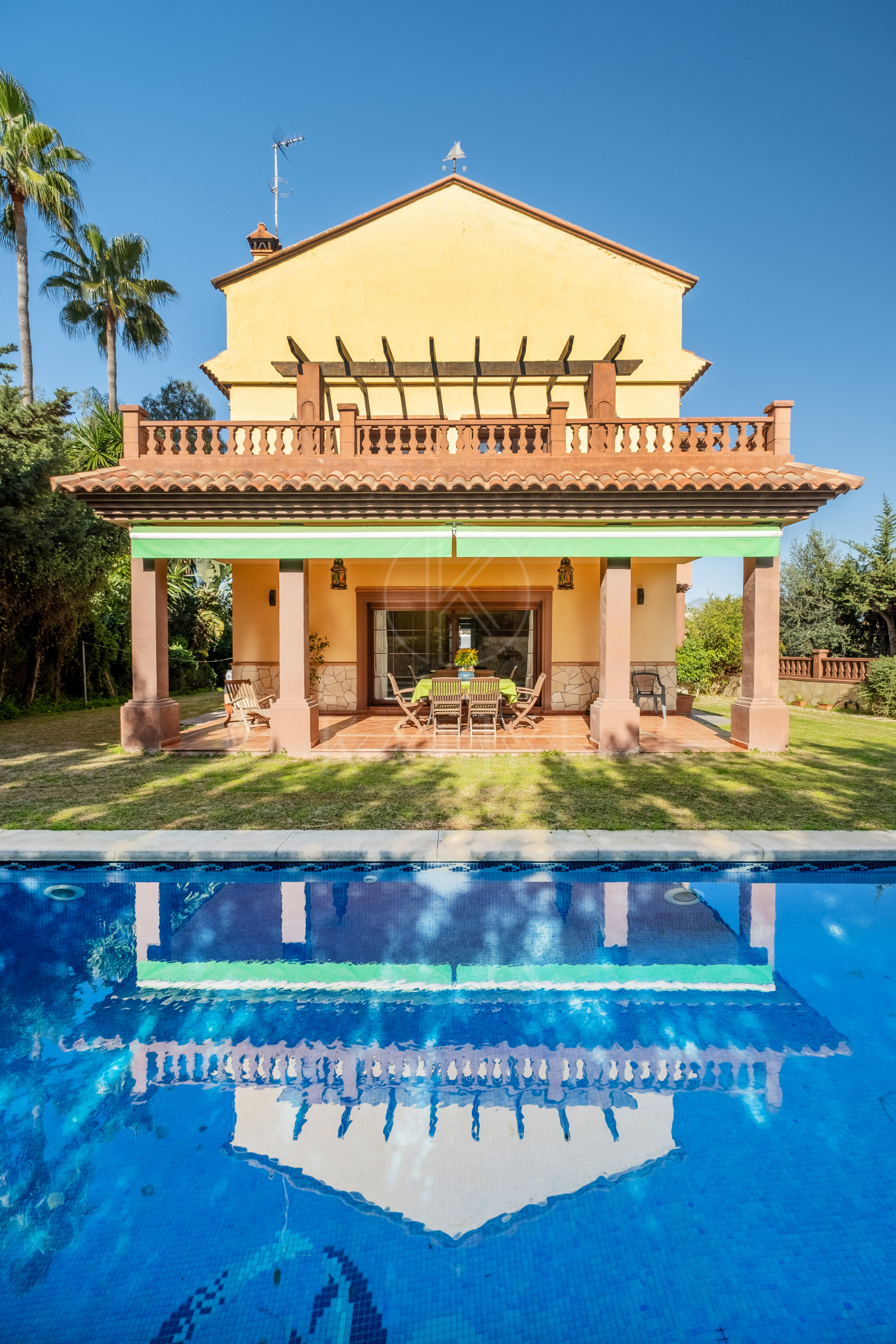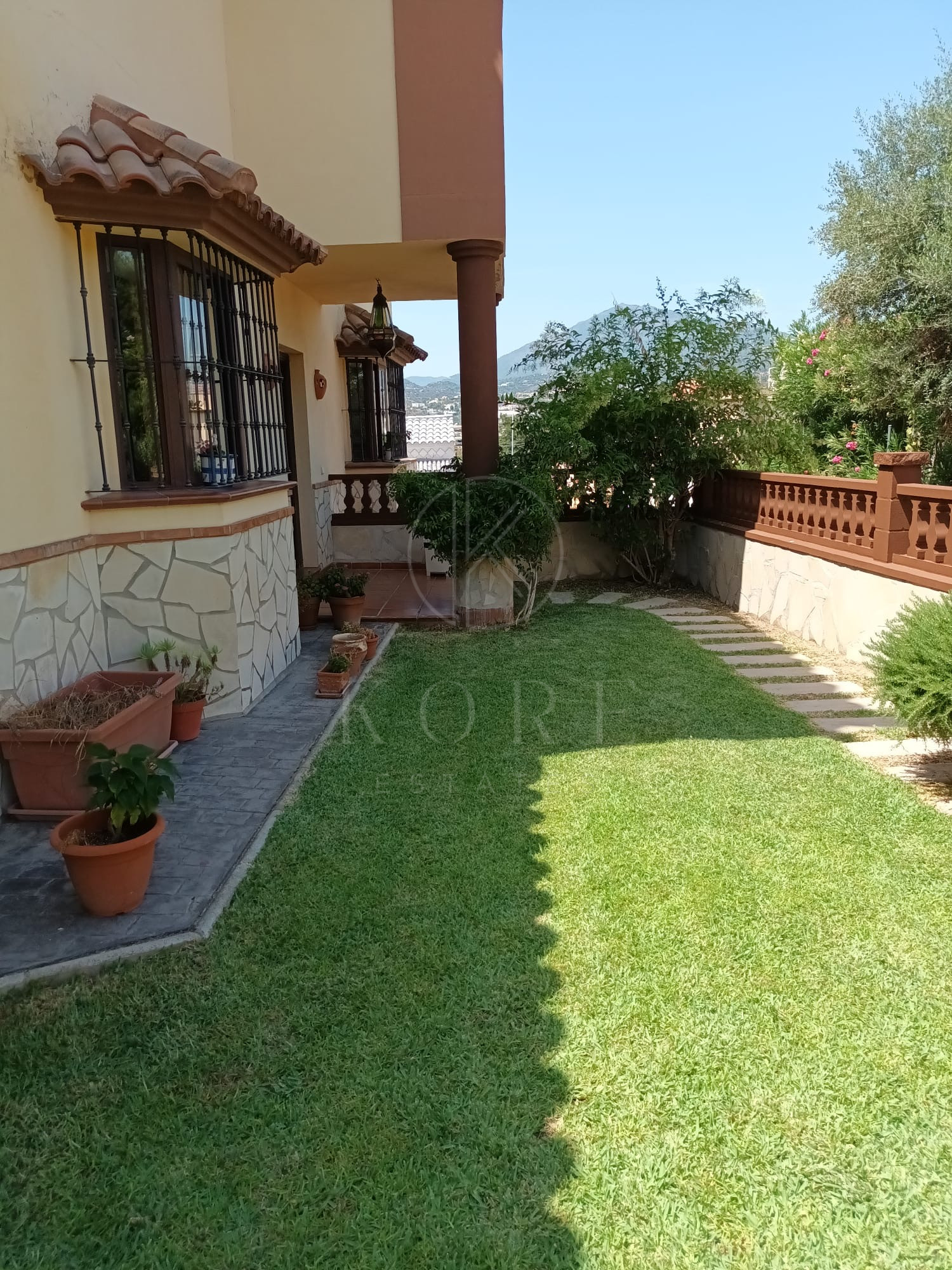The exterior of the property is a true oasis of tranquility, featuring a private pool surrounded by a lush garden designed with great attention to detail. The spacious terrace provides the perfect space to enjoy the sunny Costa del Sol climate all year round, whether relaxing with family or entertaining guests in an exclusive setting.