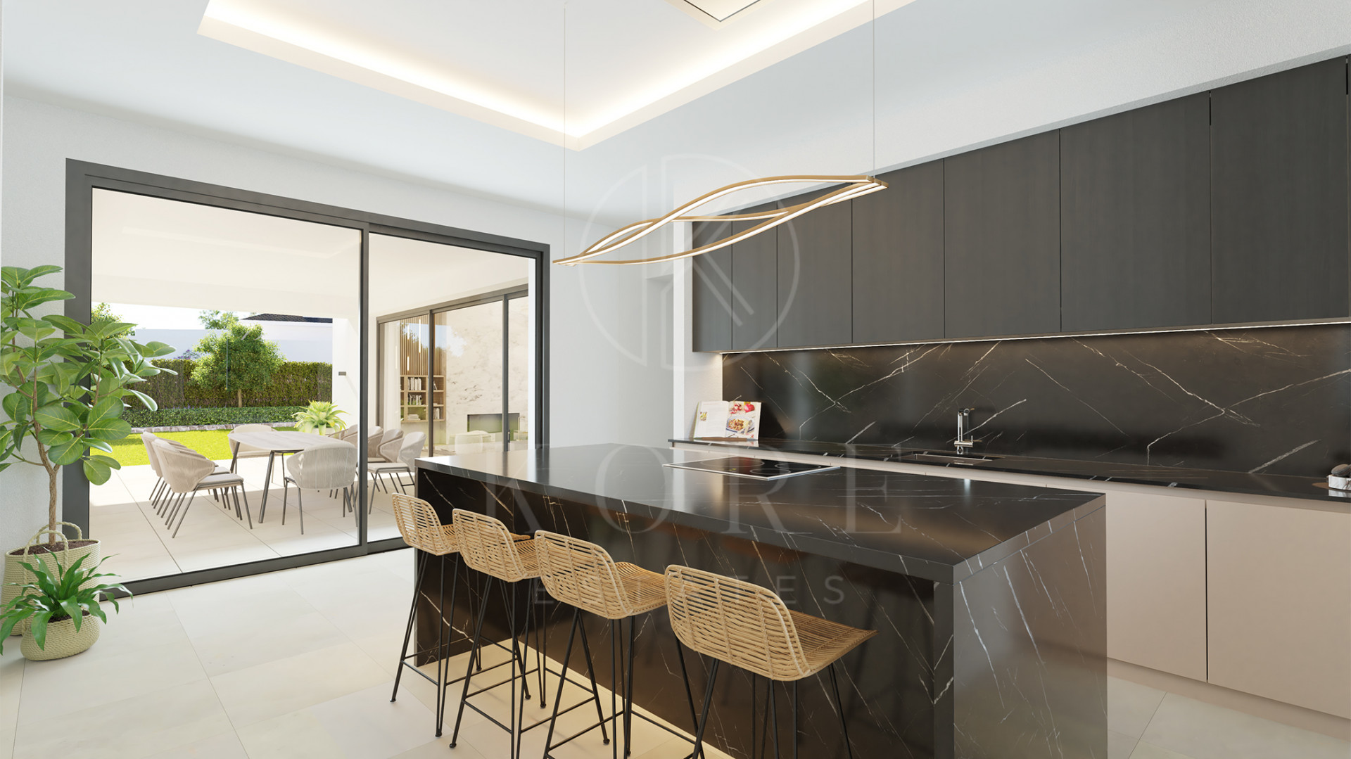 The rear terrace and garden of the villa provide a serene setting with stunning views of the golf course. This is the perfect spot to relax and enjoy the natural beauty of the surroundings. The villa is equipped with a home automation system, allowing residents to control various aspects of the property with ease. Underfloor heating and air conditioning ensure a comfortable living environment throughout the year.