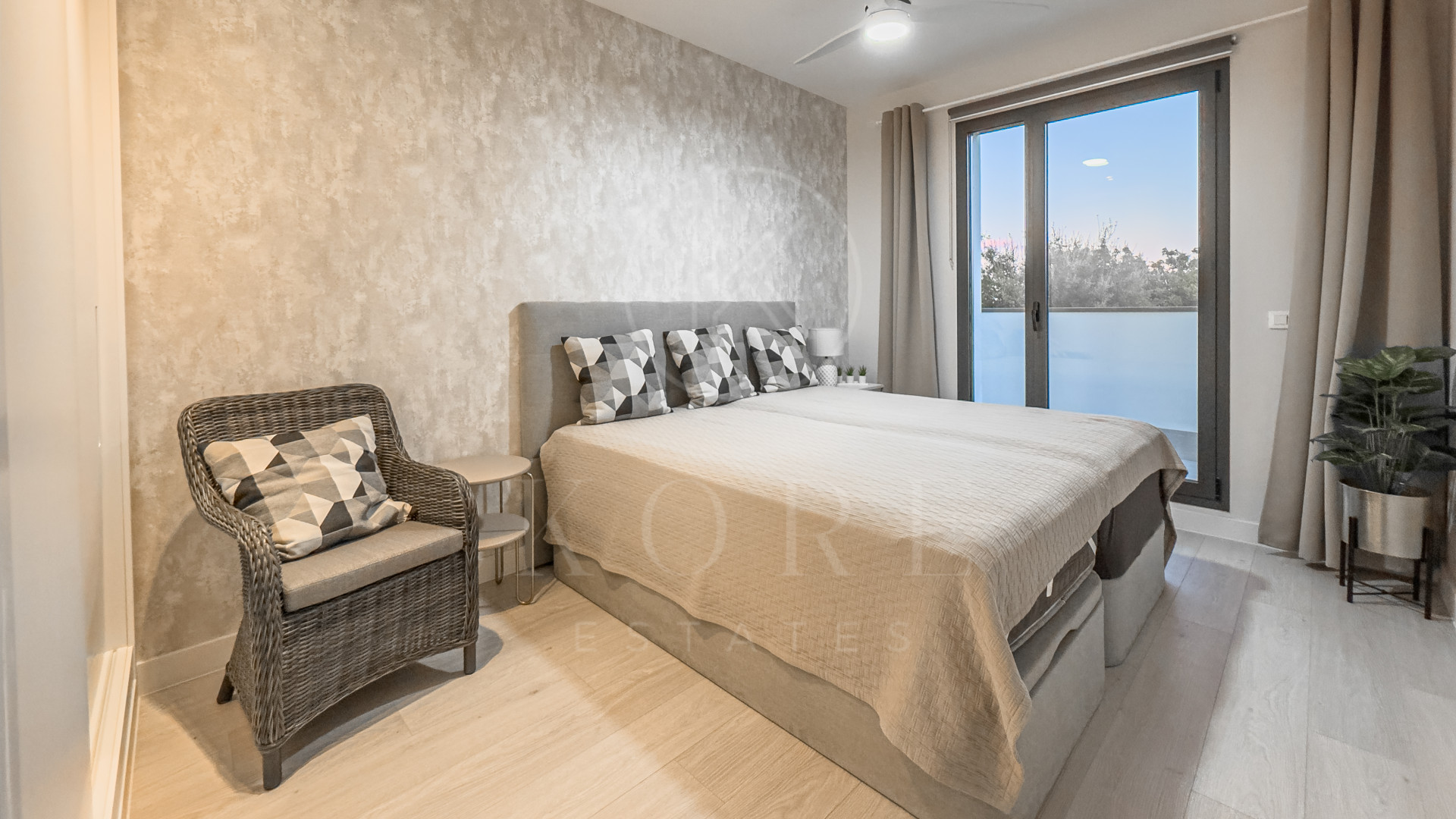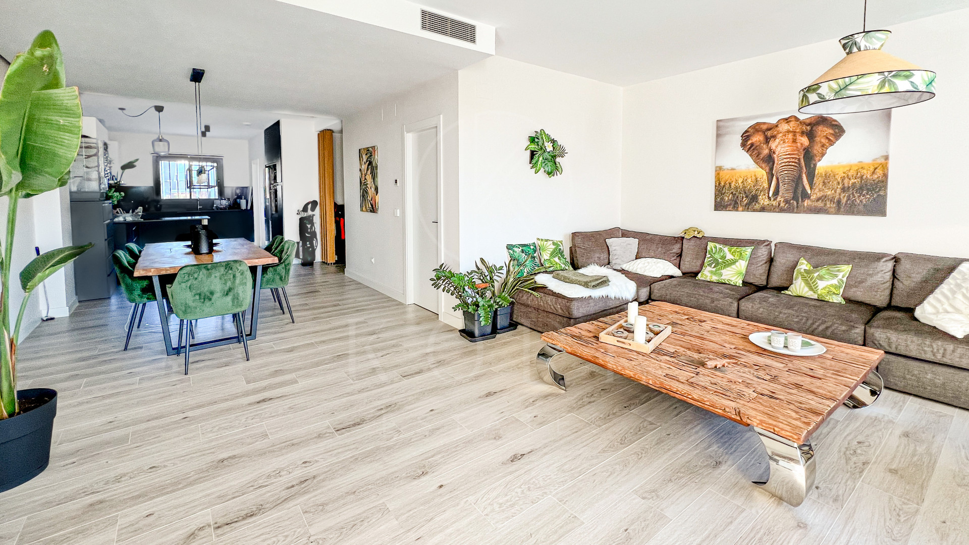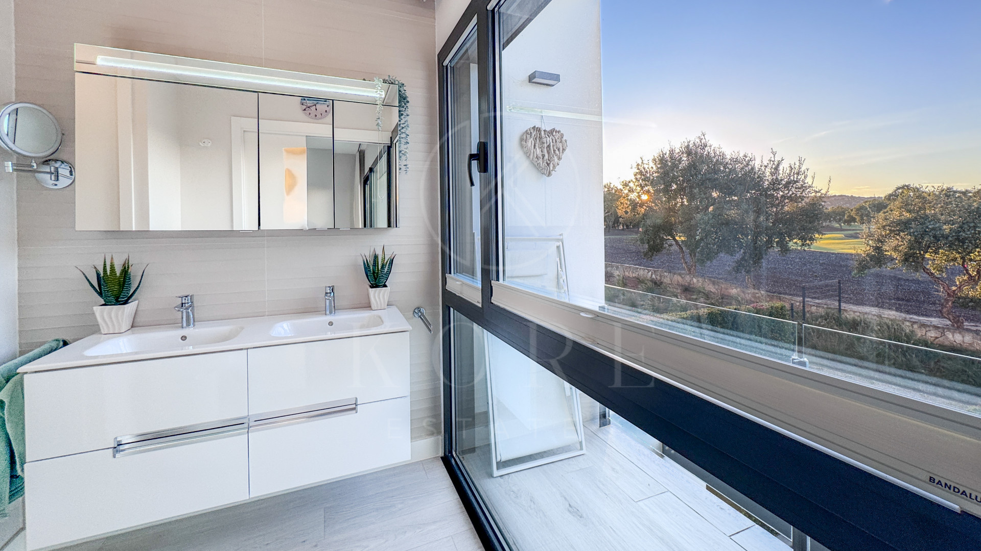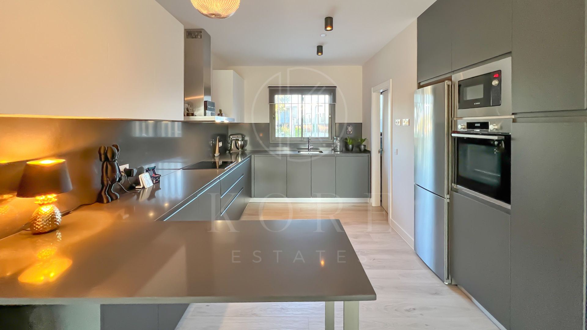 This modern townhouse, completed in 2022, offers an exceptional residential setting right next to the prestigious San Roque Golf Club. The west-facing terrace provides an unparalleled view over the gentle fairways, surrounded by majestic cork oaks. The open-plan living area with adjoining kitchen blends contemporary design with a close-to-nature ambiance.